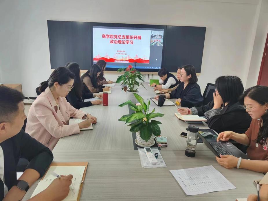 2023年10月17日下午,beat365英国官方网站党总支组织全体教师开展政治理论学习,本次学习以线上、线下相结合的方式进行,郑汴两校区同时开展,由beat365英国官方网站党总支书记苏云峰主持,宣传委员刘嘉慧和团总支书记贺苗苗进行领学。