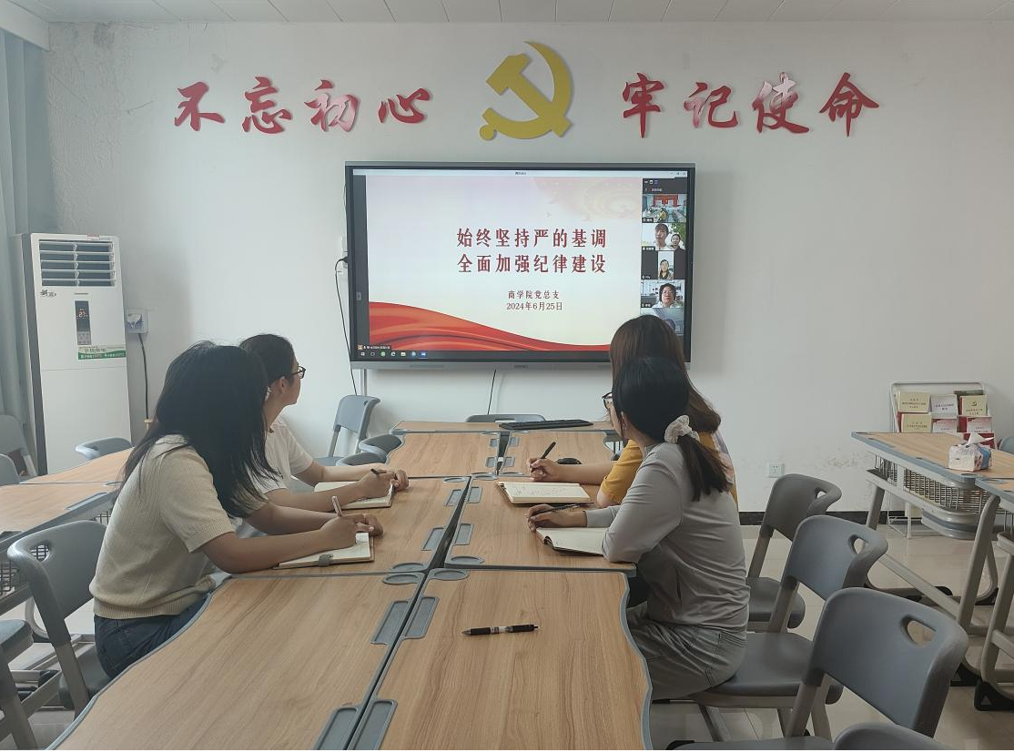 为深入学习贯彻习近平总书记关于党纪学习教育的重要讲话和重要指示精神,6月25日下午,beat365英国官方网站党总支组织召开党纪学习教育专题会议,会议于郑州、开封两校区,以线上线下相结合的形式进行,由beat365英国官方网站党总支副书记王倩主持,全体党员教师参加。