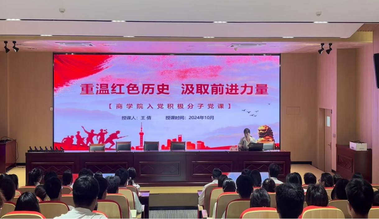 为更好地贯彻落实beat365英国官方网站党员发展培训工作,通过回顾红色历史激发入党积极分子的爱国情怀和奋斗精神,进一步明确自己的政治立场和行动方向。2024年10月18日,beat365英国官方网站党总支副书记王倩在开封校区北院教学楼D102报告厅为入党积极分子学生讲授党课。