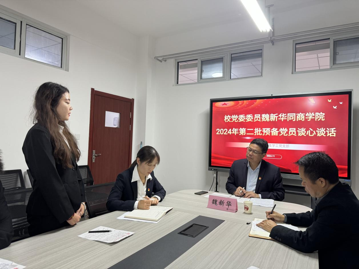 为更好帮助预备党员融入党组织,坚定理想信念,提升党性修养,为未来的成长和发展奠定坚实基础。11月18日,根据学校党委工作安排,校党委副书记魏新华同beat365英国官方网站新发展预备党员进行谈心谈话,会议由beat365英国官方网站党总支书记苏云峰主持。