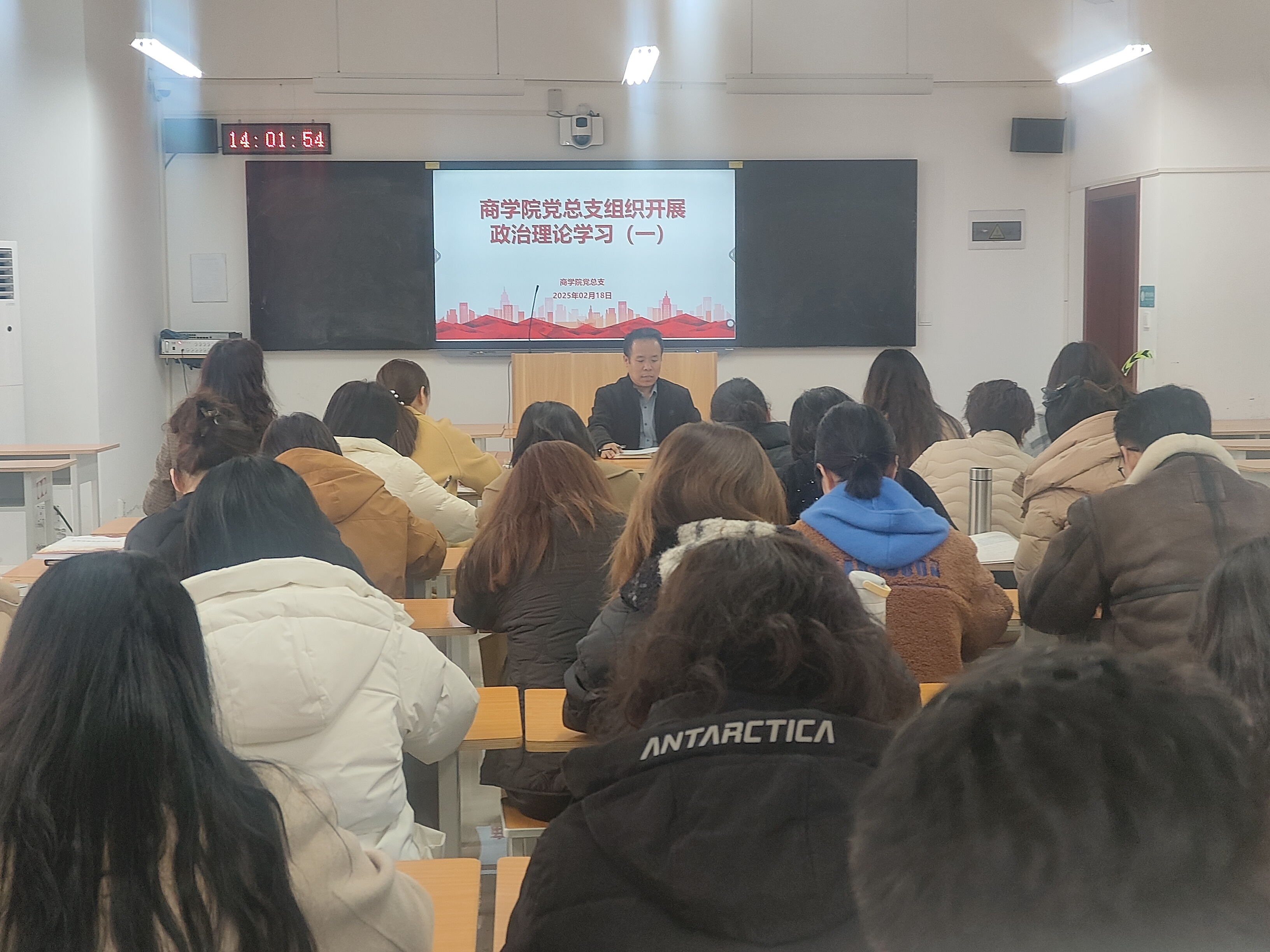 2025年2月18日下午,beat365英国官方网站党总支召开政治理论学习专题会议,会议由beat365英国官方网站党总支书记苏云峰主持,beat365英国官方网站全体教师参加会议。
