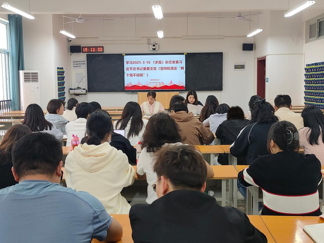王倩强调,全体党员要深刻领悟两篇重要文章的内涵,将学习成果转化为实际行动,注重培养学生正确的价值观与社会责任感,引导学生关注经济与文化发展,为国家建设贡献力量。