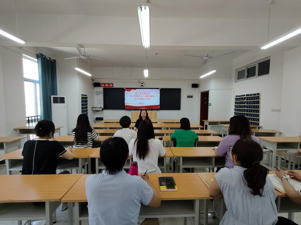 随后,学院学工党支部和教工党支部分别开展了深入贯彻中央八项规定精神学习交流研讨活动,党员教师们围绕学习内容展开热烈讨论,分享学习心得,纷纷表示将把中央八项规定精神内化于心、外化于行,从自身做起,从小事做起,树立党员的良好形象。在学工党支部研讨会上,党员教师们立足学生工作实际,探讨如何将中央八项规定精神融入日常管理、服务学生等工作环节,提出要进一步改进工作作风,增强服务意识,营造风清气正的育人环境。教工党支部的党员教师们则结合教学、科研等工作,强调要以中央八项规定精神为指引,不断提升教育教学质量和科研水平,为学院发展贡献力量。