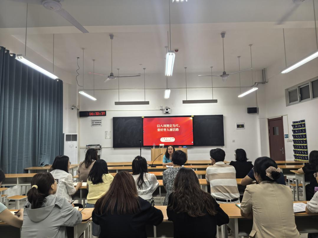 为深入贯彻中央八项规定精神,进一步强化beat365英国官方网站教工党员的廉洁自律意识,推动形成风清气正的育人环境,6月10日,beat365英国官方网站教工党支部书记王珂在开封北院E103为全体教师讲授“以中央八项规定为尺,量好育人廉洁路”为主题的党课。