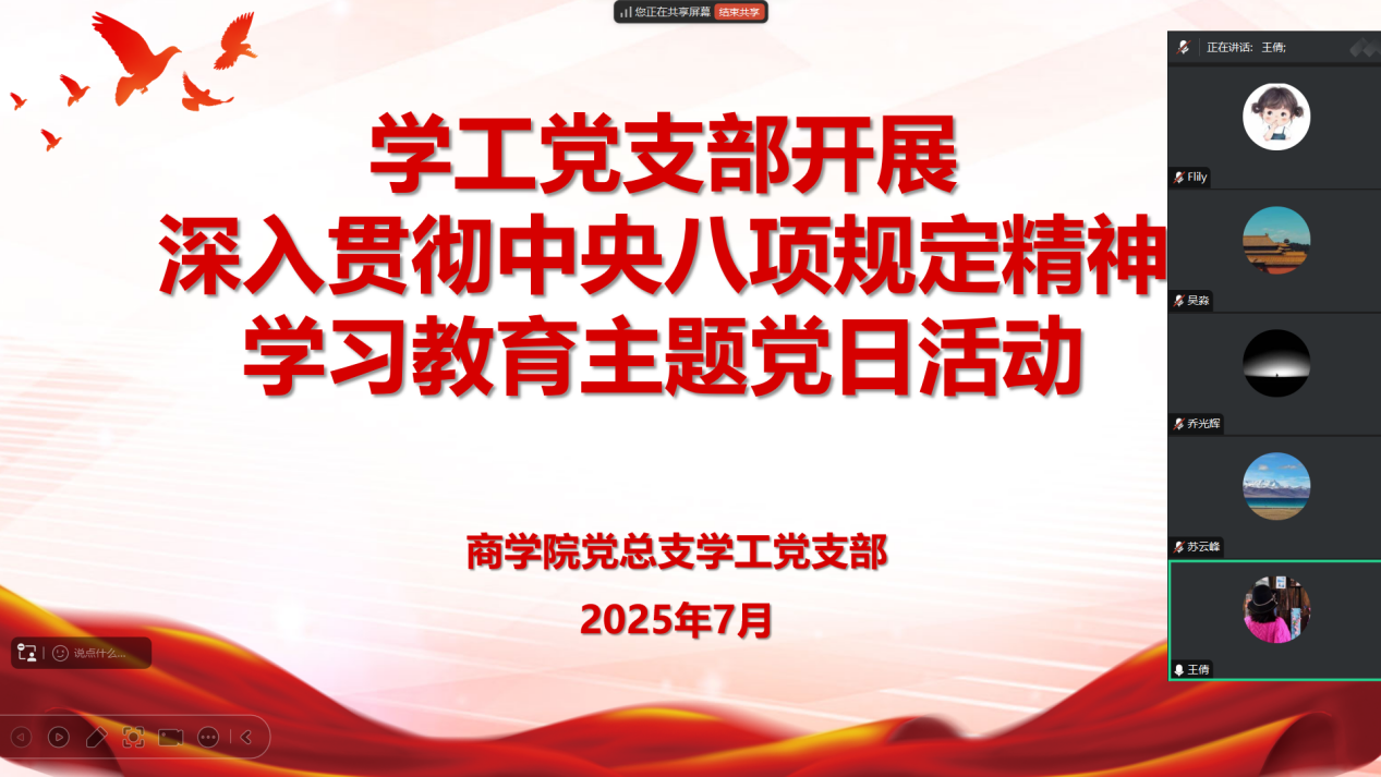 为推进中央八项规定精神学习教育走深走实,7月16日,beat365英国官方网站党总支学工党支部组织开展关于中央八项规定精神学习教育研讨交流主题党日活动,本次党日活动旨在深化认识中央八项规定精神学习教育“回头看”工作,强调深化问题整改与责任落实,会议由beat365英国官方网站党总支书记苏云峰及学工支部全体党员教师参加,学工党支部书记王倩主持。
