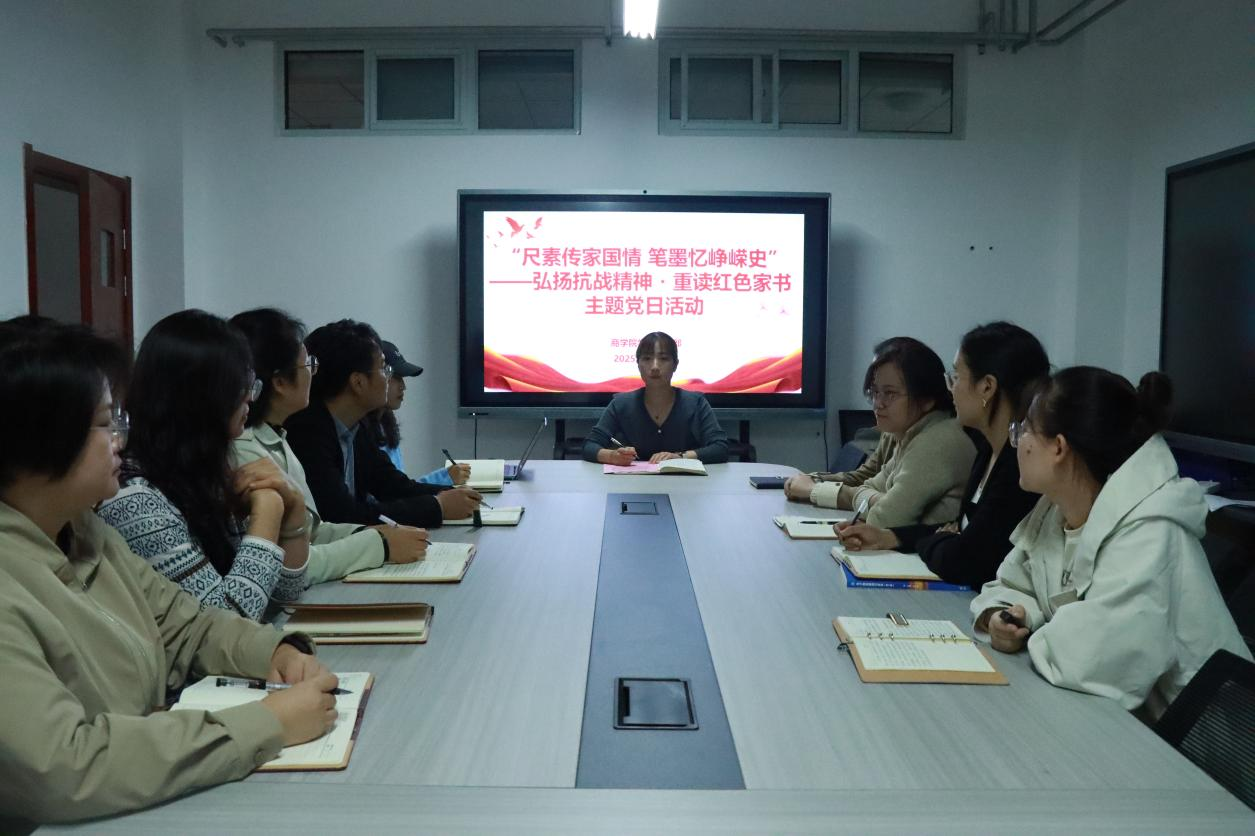 为深入引导beat365英国官方网站学工党支部党员教师从红色家书中汲取精神养分、厚植家国情怀,9月23日,beat365英国官方网站学工党支部以“尺素传家国情 笔墨忆峥嵘史”为主题,开展弘扬抗战精神・重读红色家书主题党日活动,本次活动由党总支副书记王倩主持,学工党支部全体党员教师参加。