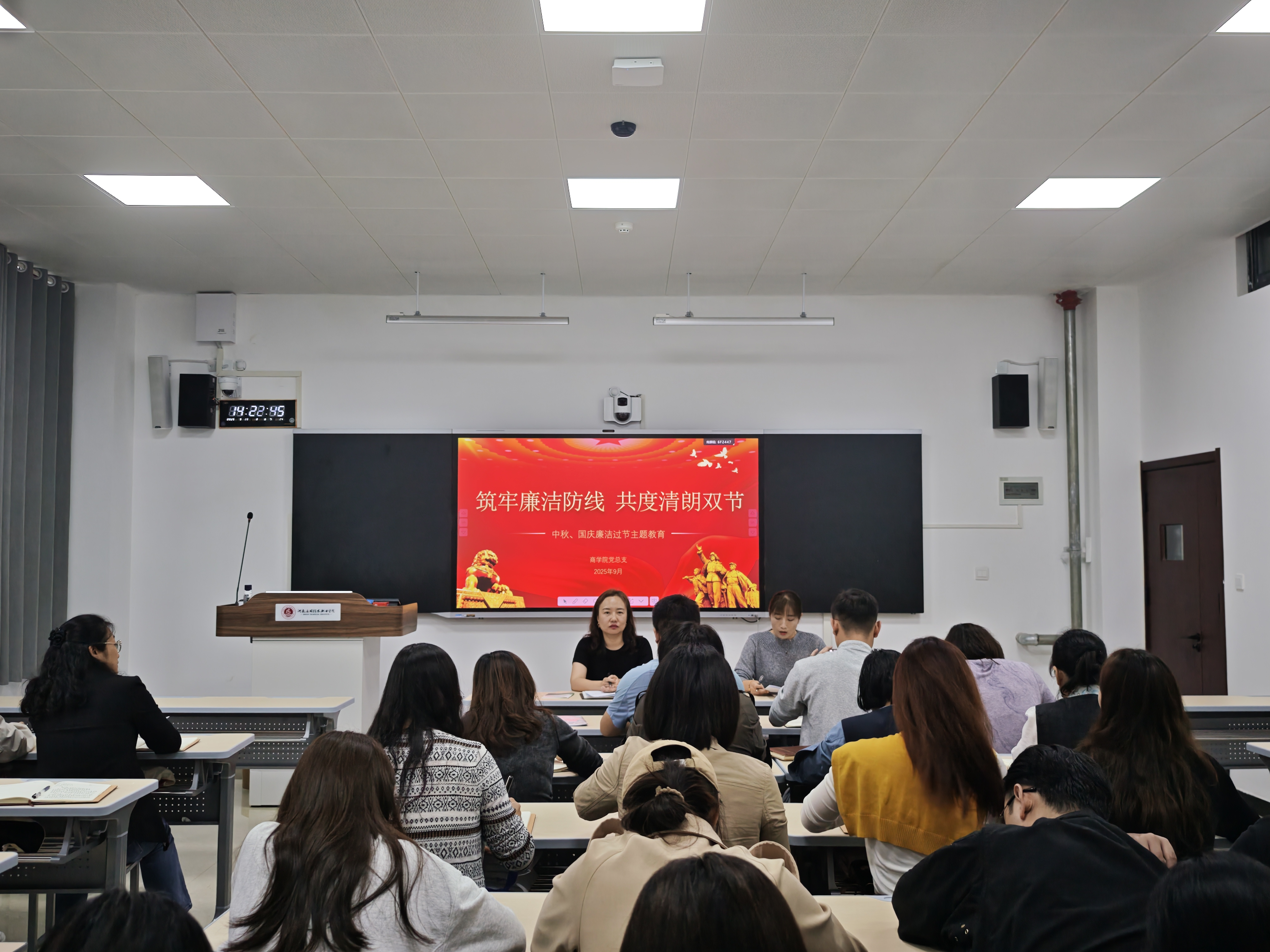 为贯彻落实学校纪委关于节日期间正风肃纪的工作要求,切实加强教师廉洁自律意识,确保全体教职工度过风清气正、平安祥和的双节,9月28日下午,beat365英国官方网站党总支组织召开以“筑牢廉洁防线 共度清朗双节”为主题的中秋国庆双节廉政教育主题会议。会议由beat365英国官方网站党总支副书记王倩主持,学院全体教师参会。