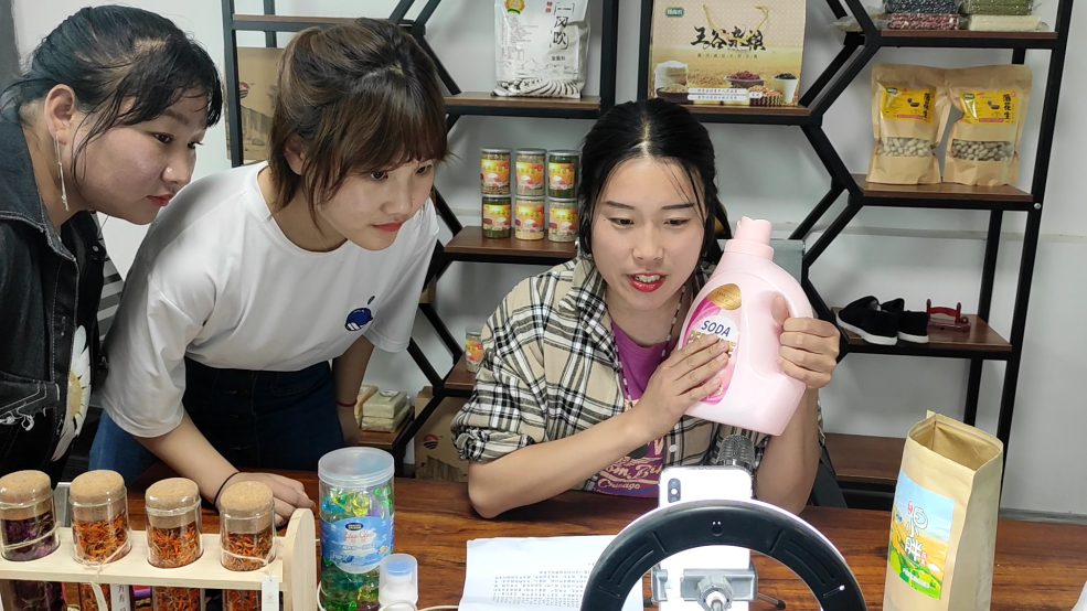 经过两期培训学习,学员们迎来了阶段性小考——完成一次30分钟左右的带货直播,共有10名主播参加了最终测试,迈出了成为带货主播的第一步。这样的学习方式,比传统讲授教学更贴近学员的学习需求,将beat365英国官方网站理实一体化的教学经验运用到了技术服务的培训中来,效果显著。学员们从刚开始的胆怯、不敢开口、不会带货,到后面大胆表达、积极互动,技术服务队的师生与学员们打成一片,现场气氛热烈、学习氛围浓厚。