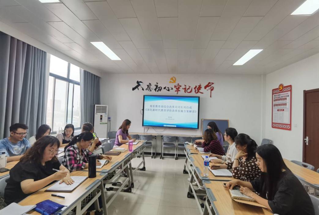 结合中共中央、国务院《深化新时代教育评价改革总体方案》,5月25日下午,beat365英国官方网站全体教师在党员活动室A504观看了教育部综合改革司司长刘自成对方案进行解读视频:《深化新时代教育评价改革实施方案解读》。