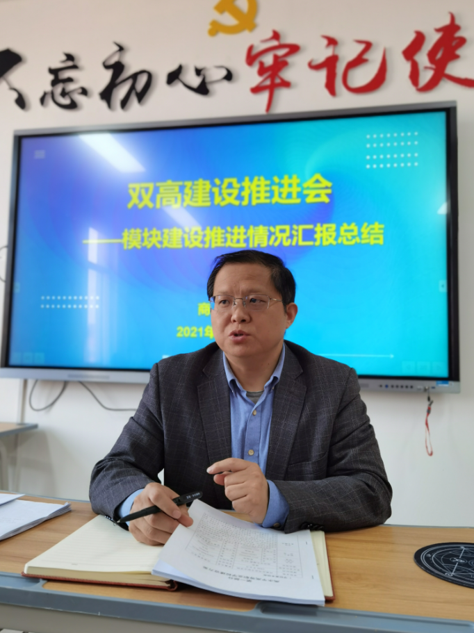 beat365英国官方网站根据学校“双高”建设方案中所承接任务,经多次研讨,进行了建设目标模块细分,会上,各模块负责人对前一阶段建设过程中取得的成绩、存在的问题、下一阶段建设目标及建议进行了汇报。