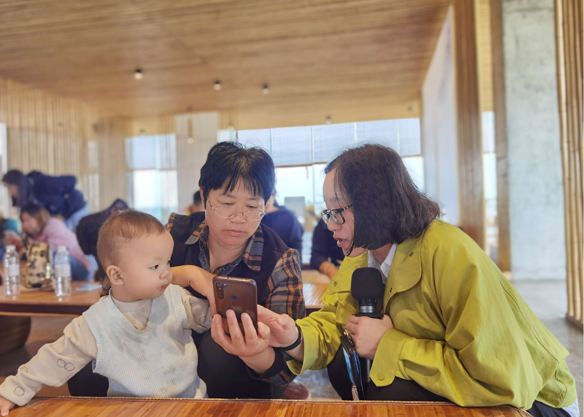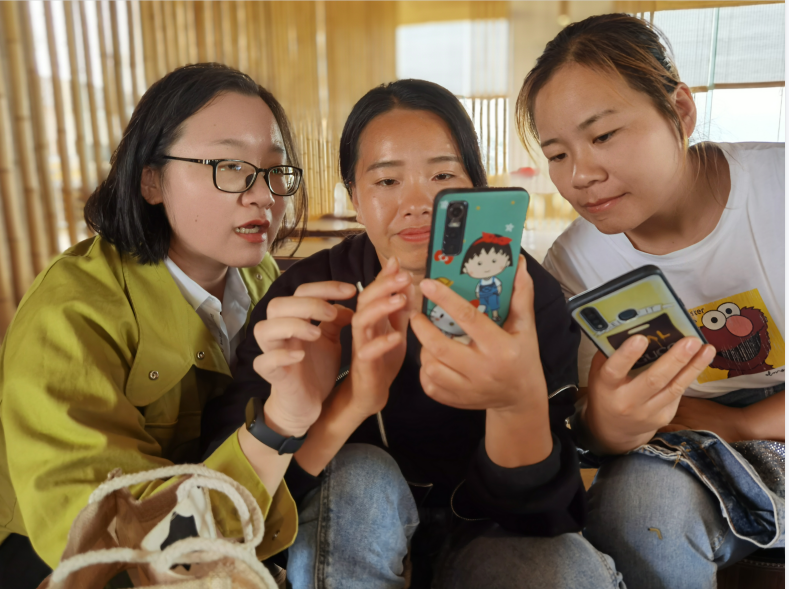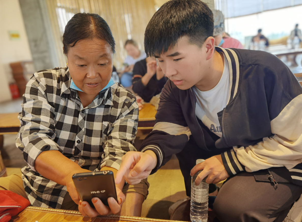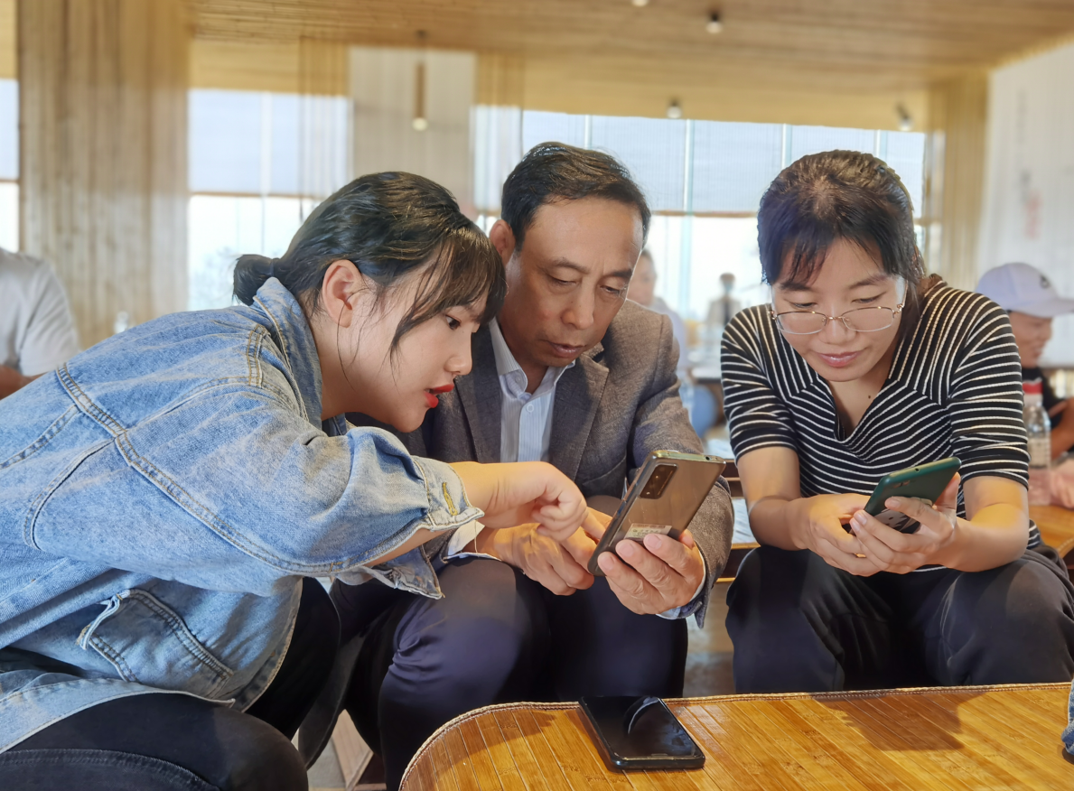 会议室坐满了致力于乡村电商事业的村民,他们有些是电商行业的从业者,有些是有意向做电商的普通村民,有的学员甚至老少结队“全家总动员”一起学电商,他们或在聆听电子商务技术服务队的讲解,或在用手机录制直播演示的视频,或在接受专业教师指导,现场学习气氛热烈。