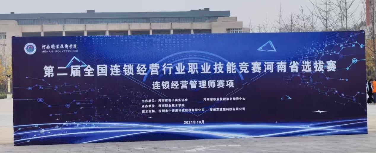 2021年10月28日,第二届全国连锁经营行业职业技能竞赛连锁经营管理师赛项河南省选拔赛在河南职业技术学院成功举行。本次竞赛由河南省电子商务协会、河南省职业技能鉴定指导中心、深圳市中诺斯科技股份有限公司、郑州京慧越科技有限公司共同举办。竞赛分为理论考试和沙盘实践,共吸引来自省内11所学校的13支队伍参加。按照竞赛要求,在选拔赛中获得前三名的队伍将代表参加国赛。