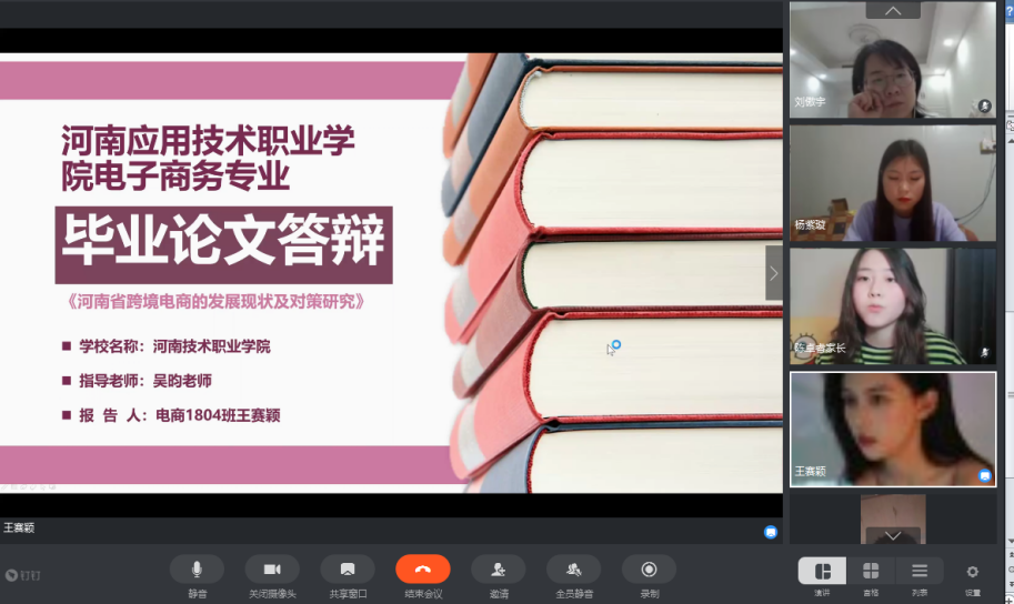 毕业论文是对学习成果的综合性总结和检阅,也是检验学生掌握知识的程度、分析问题和解决问题基本能力的一份综合答卷。为在疫情防控需要下保障教学质量,beat365英国官方网站于2020年5月26日通过钉钉在线会议的形式,组织了2018级各专业优秀毕业论文线上公开答辩活动。