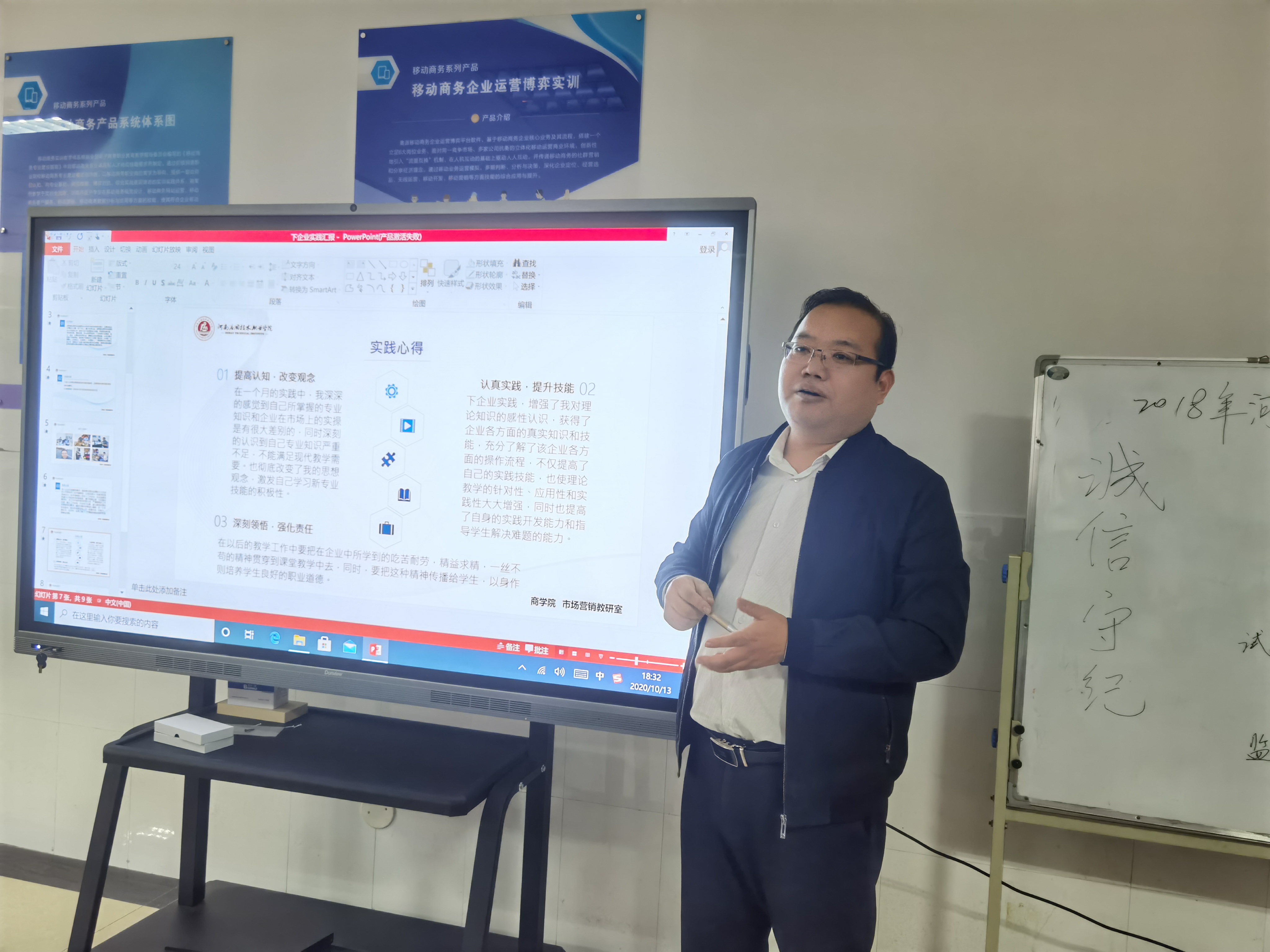 为全面贯彻落实《国家职业教育改革实施方案》,提升教师实践动手能力,提高教育教学水平,今年暑假,beat365英国官方网站组织14名教师分别到肯德基、京东物流、正大集团等单位参加企业实践锻炼。10月13日晚,一场检验教师暑期企业实践情况,总结实践锻炼成果的报告会在实训楼614举办,beat365英国官方网站全体专兼职教师参加了本次会议。