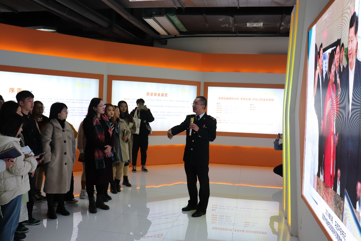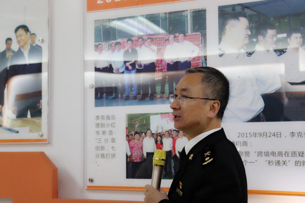 在保税中心,郑州新区海关兰磊关长热情接待beat365英国官方网站师生,并全程带领老师和同学们进行参观学习,为大家讲解河南跨境电商近些年的发展历程及取得的辉煌成就。