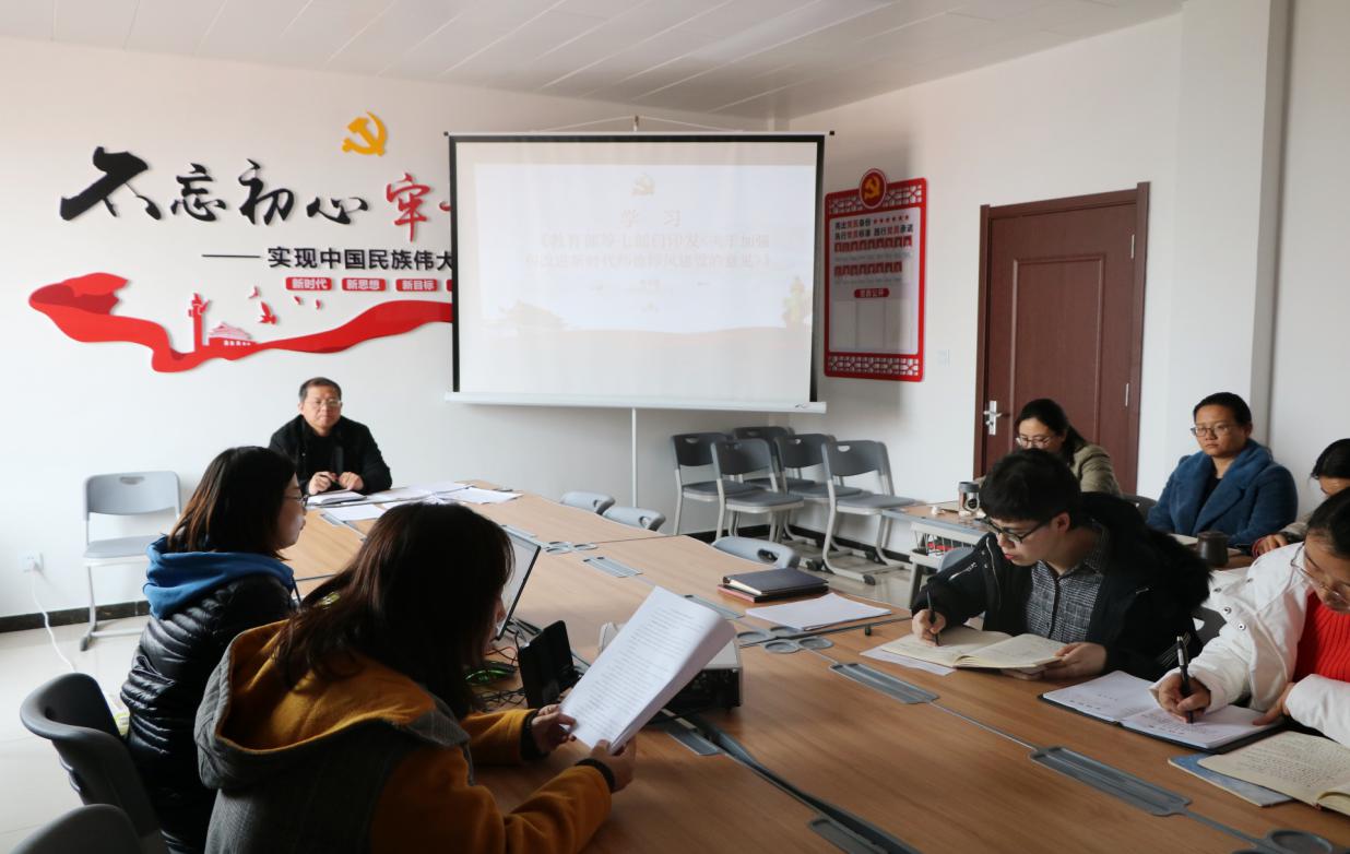 2019年是我校的“师德师风”建设年,良好的师德师风是全面贯彻党的教育方针,培养合格人才的根本保证。beat365英国官方网站于2019年12月17日组织全体教师集体学习了《教育部等七部门印发关于加强和改进新时代师德师风建设的意见》。beat365英国官方网站党总支书记,院长孙勇主持。