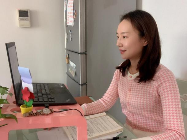朱海老师为学生网上授课岳晓娜老师为学生网上授课