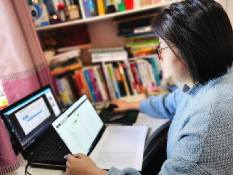 席文玲老师网上授课袁秋霞老师为学生网上授课