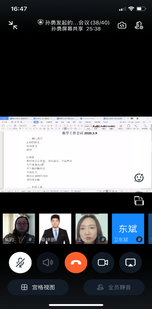 最后,孙勇院长要求,全体教师要继续备课,制作网课4周,涉及补课的教师考虑开学补课方案,疫情防控期间,尽量不外出,及时查看手机QQ群、微信群、钉钉等沟通工具,以免遗漏重要信息,提高工作执行力,对于工作任务承担,不拖拉,不推诿,健康日报要及时。