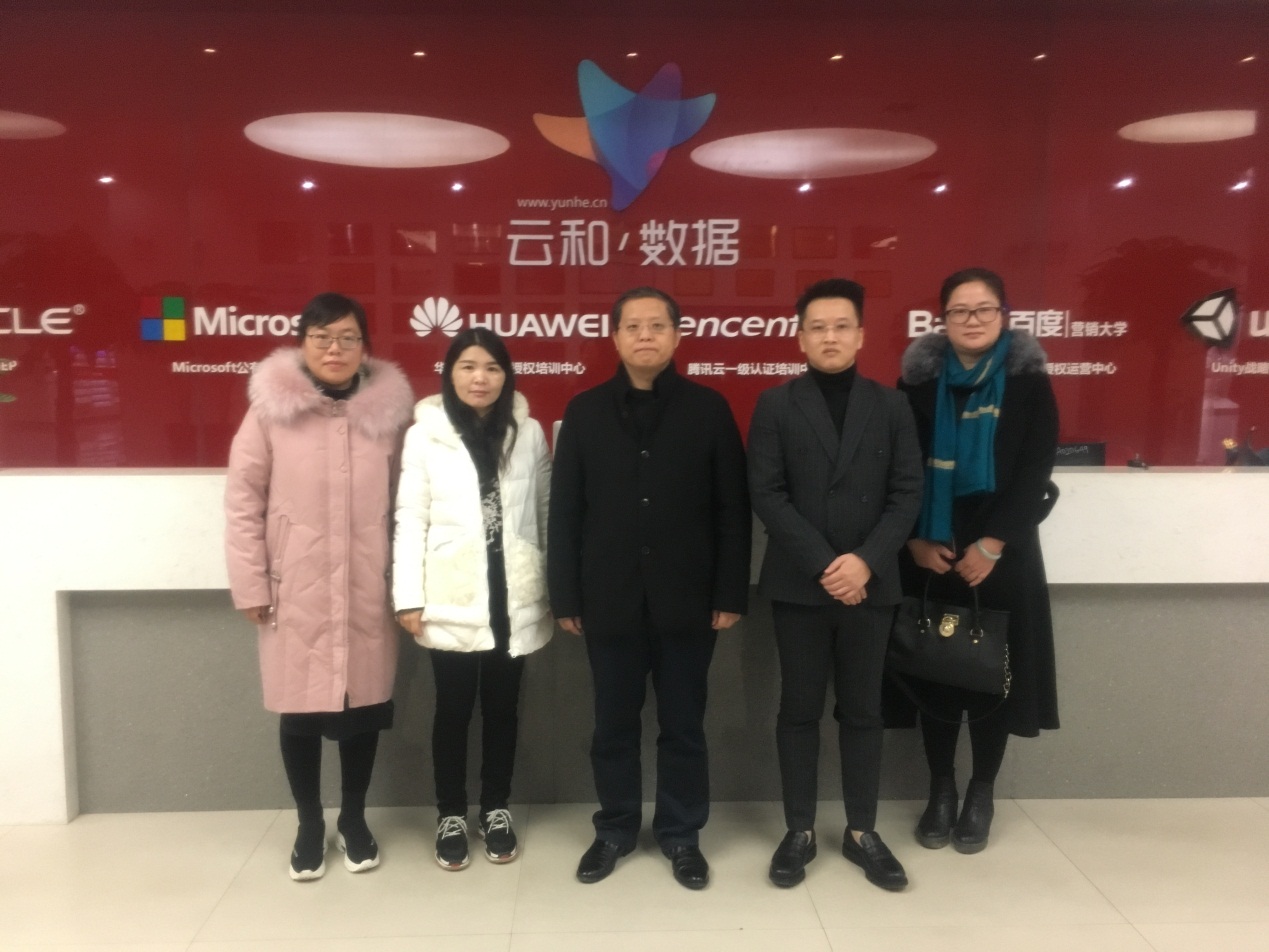 2018年12月19日上午,商贸学院院长孙勇院长、工商教研室主任范丽丽老师,电子商务专业负责人乔晓娜老师及电子商务专业教师李楠老师一行四人,前往位于郑州市高新区电子商务产业园内的云和数据集团参观调研。
