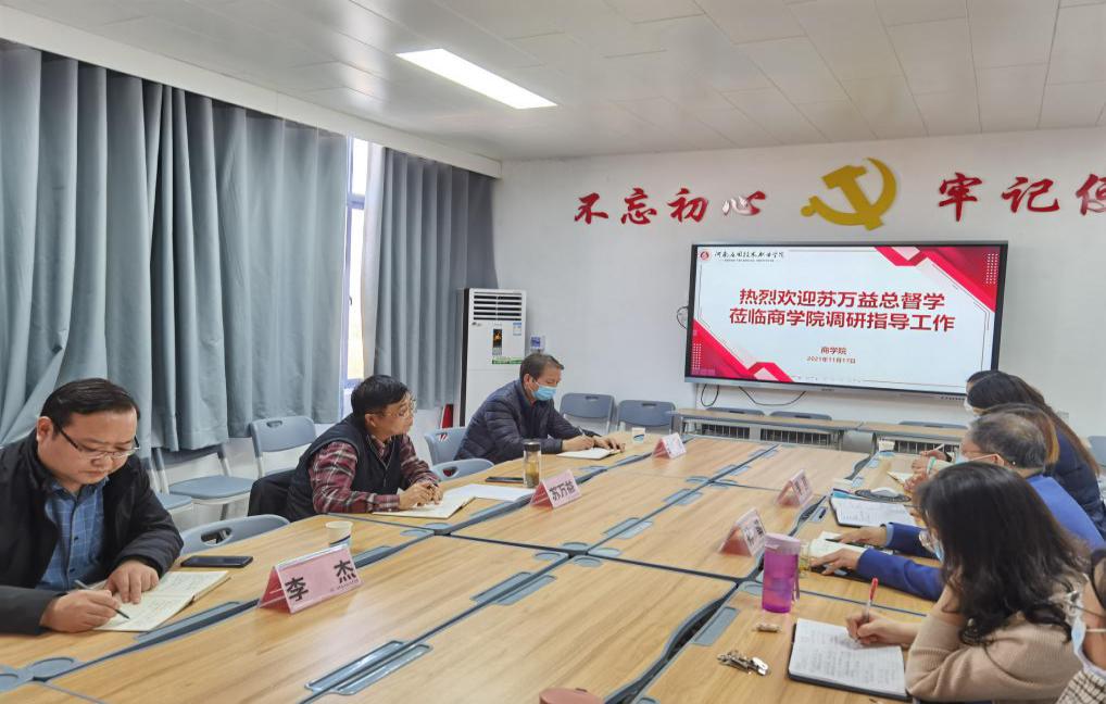 11月17日下午,学校总督学苏万益、教务处副处长王勇、发展与质量管理处副处长李杰莅临beat365英国官方网站调研指导工作。调研会议办公楼504活动室进行。院长孙勇、党总支书记周燕及部分骨干教师参加了调研座谈会。