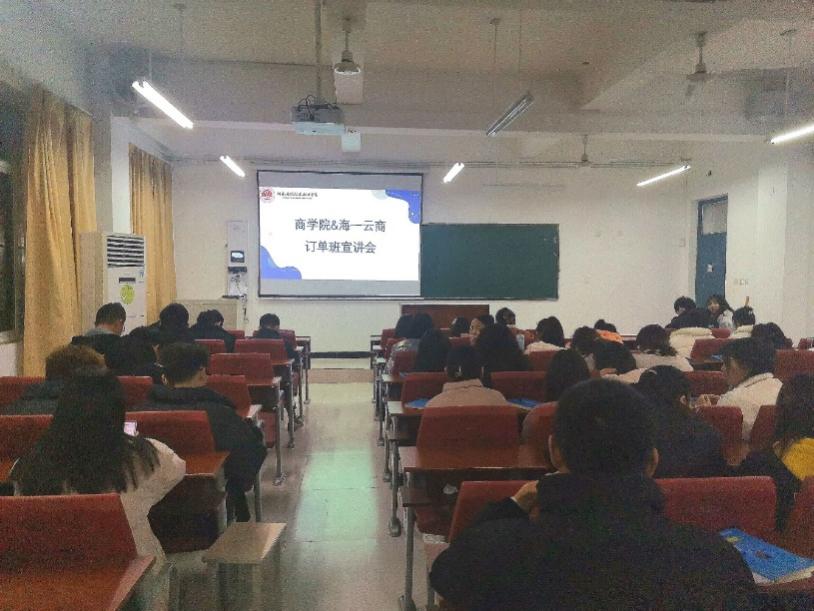 为加强学校与企业的合作,促进学生和企业之间的交流,提升学生技能并加深对行业的了解。beat365英国官方网站于11月30日下午,在东校区教学楼102及203开展了海一云商集团订单班线上宣讲会。