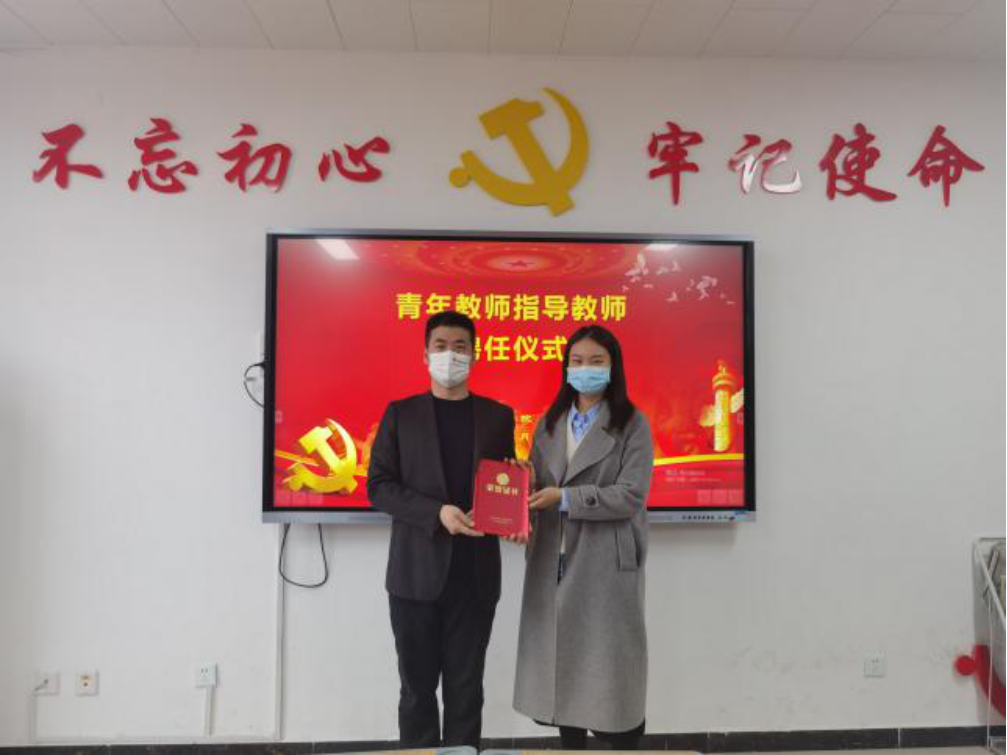 会上,教务办主任王珂宣读了《beat365英国官方网站关于聘任高钰等十六位同志为青年教师指导教师的通知》,院长孙勇为五位指导教师颁发聘书。