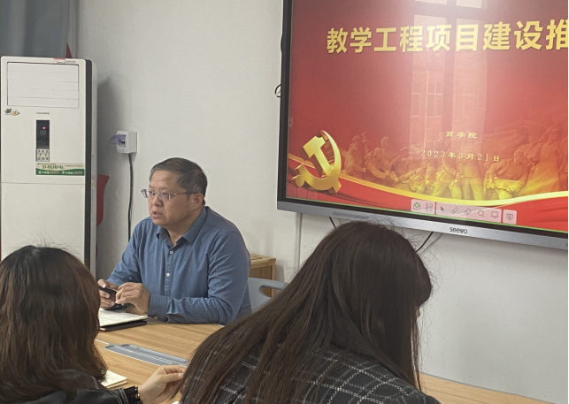 为进一步推动我院教学工程项目建设,深化教学研究与实践,培育优秀教育教学成果并发挥示范与引领作用,3月21日下午,beat365英国官方网站组织全体教师召开教学工程项目建设推进会。会议由副院长王珂主持,院长孙勇及2022年立项的教研教改项目、课程建设培育项目、教材建设项目负责人出席会议。