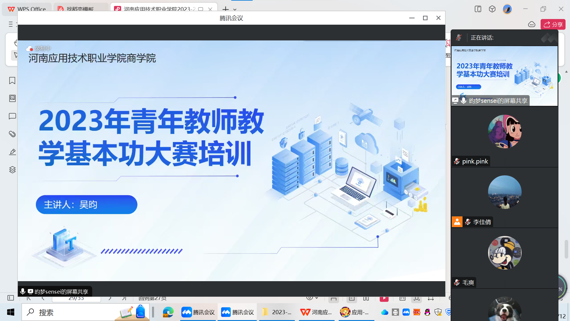 2023年11月14日,beat365英国官方网站组织开展2023年青年教师教学基本功大赛参赛教师赛前培训,本次培训以线上形式开展,由电子商务教研室主任吴昀就竞赛内容进行解析,共13名拟参赛教师参加培训。大赛目的在于提升青年教师的教学能力和专业素养,培养他们的教育教学创新能力,并进一步提高学校的教学质量。为此,beat365英国官方网站协同各青年教师的指导教师,为参赛教师提供全方位的支持和指导,以确保他们在比赛中取得优异的成绩。