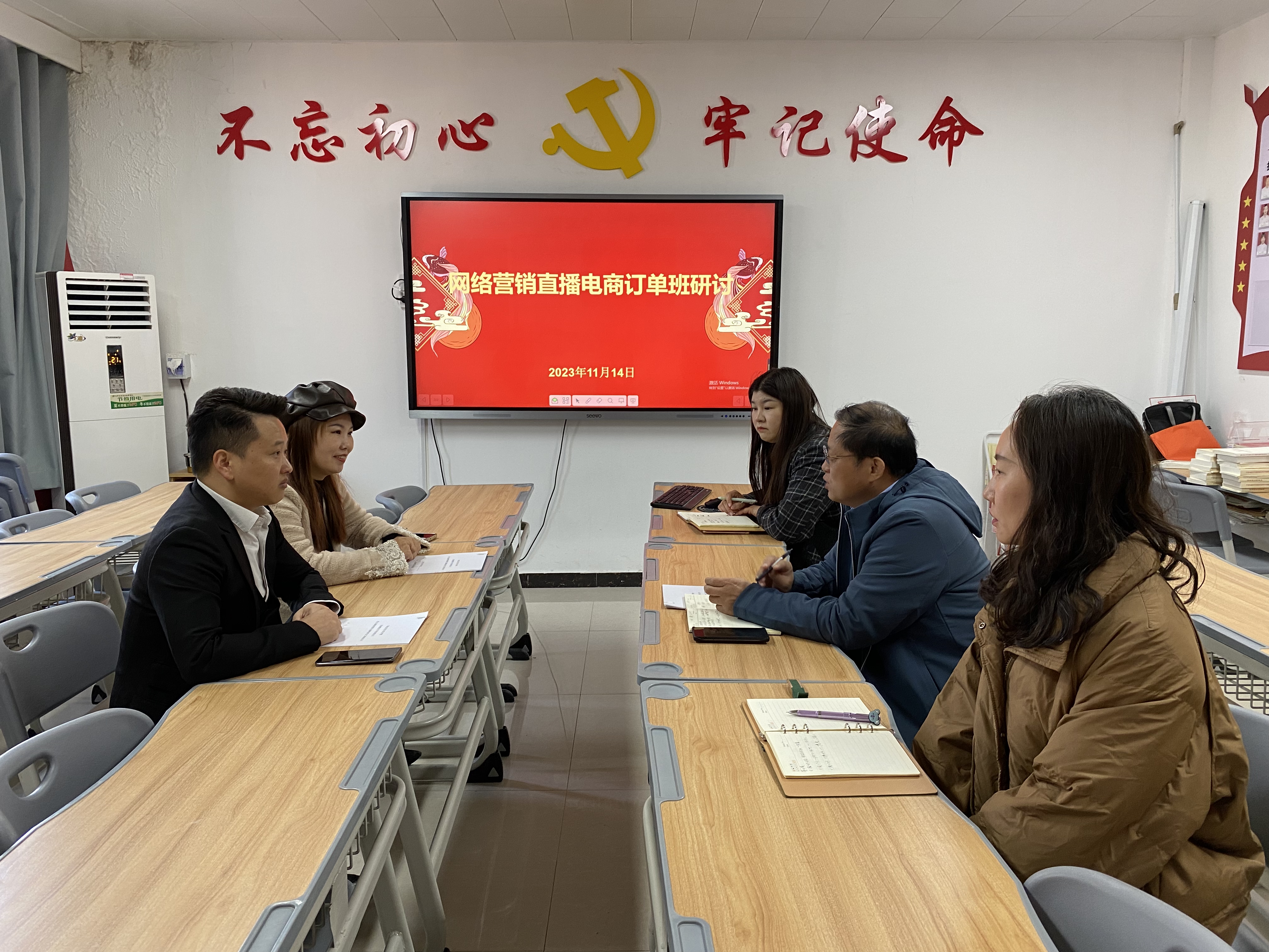 11月14日, 河南博堂电子科技有限公司总经理伦敬凯一行莅临我校beat365英国官方网站就联合开展网络营销直播电商订单班事宜进行研讨交流。院长孙勇、副院长王珂,及相关专业教师参加会议。会议由办公室主任刘嘉慧主持。