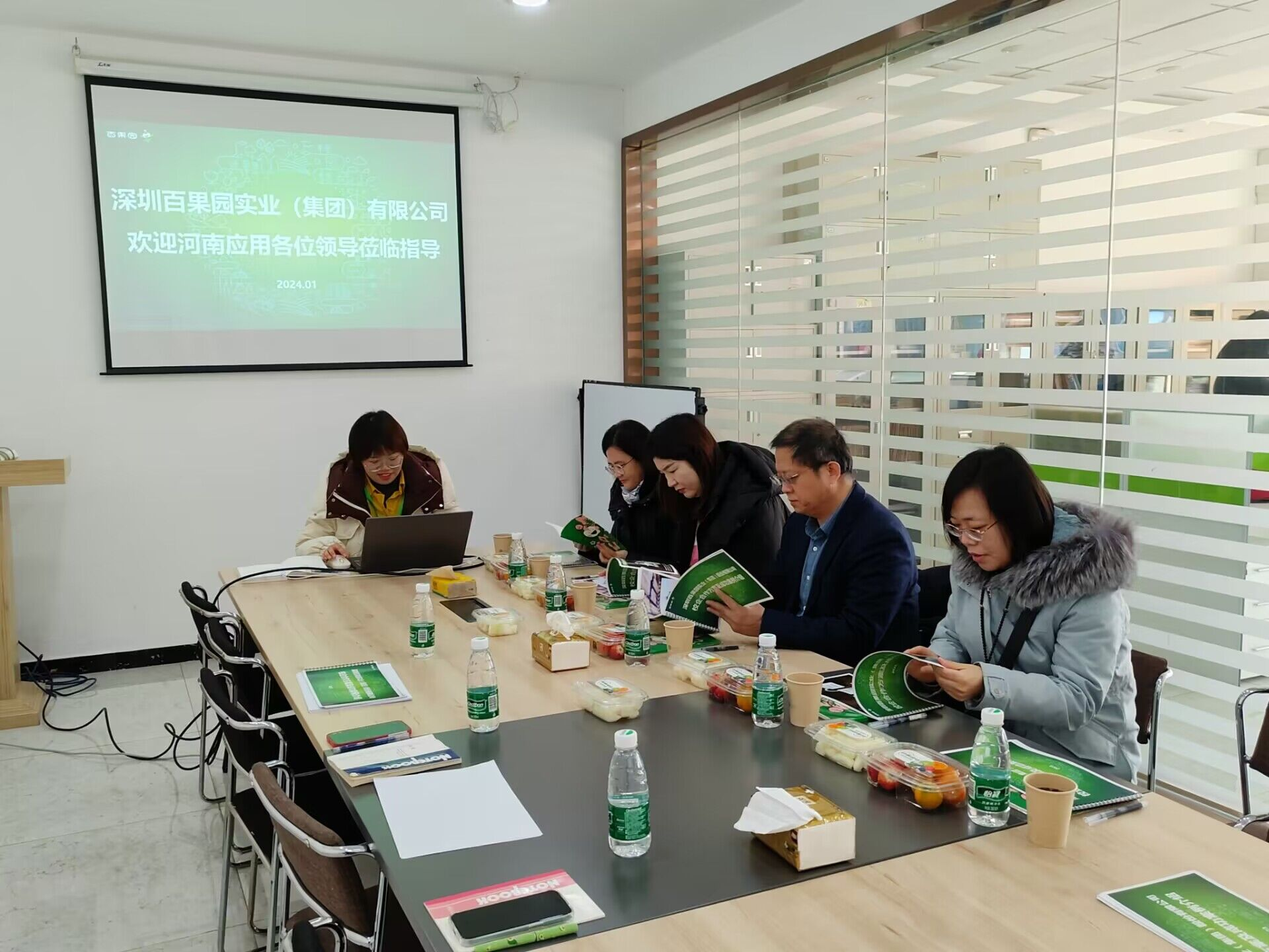院长孙勇一行深入了解了百果园的历史、经营理念、产品研发、员工培养模式及校企合作方面等情况,与河南总部负责人及员工进行了深入的交流,探讨了校企合作的可能性和未来的合作方向。