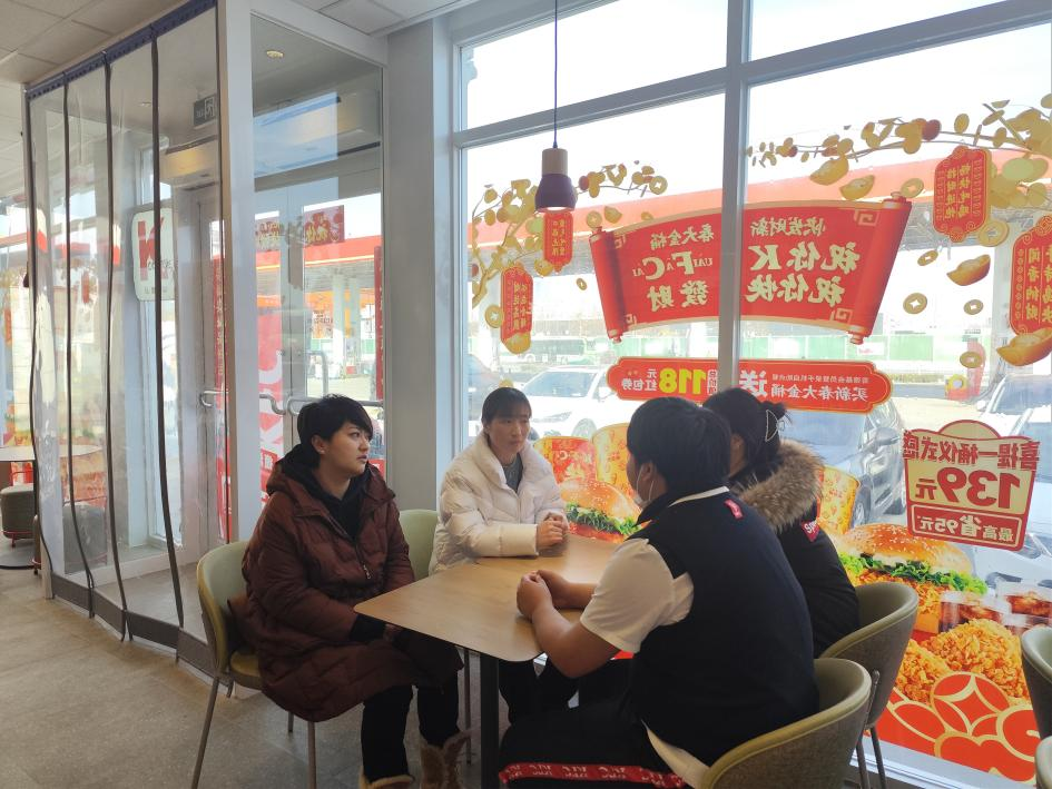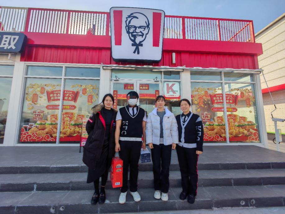 最是情暖岁寒时,一叶一枝总关情。为进一步做好学院拓岗访企和资助育人工作,深入贯彻落实国家和学校的学生资助政策,拓宽学生就业渠道。1月24日,由beat365英国官方网站党总支副书记王倩带队,专职辅导员庞轶以及兼职辅导员马晓月前往肯德基商都路博学路中石油店,为正在顶岗实习的家庭经济困难学生送去学校的温暖和新春的祝福。