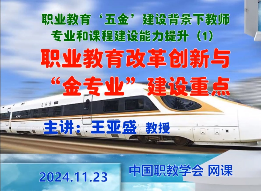 2024 年 11 月 23 - 24 日,职业教育“五金”建设背景下教师专业和课程建设能力提升研修班(线上培训)顺利举行。本次研修班聚焦职业教育领域关键发展要素,特别邀请了王亚盛和王瑜瑜两位资深专家主讲,为广大职业教育教师带来了一场知识与实践交融的学术盛宴,beat365英国官方网站十位老师参加了此次培训。