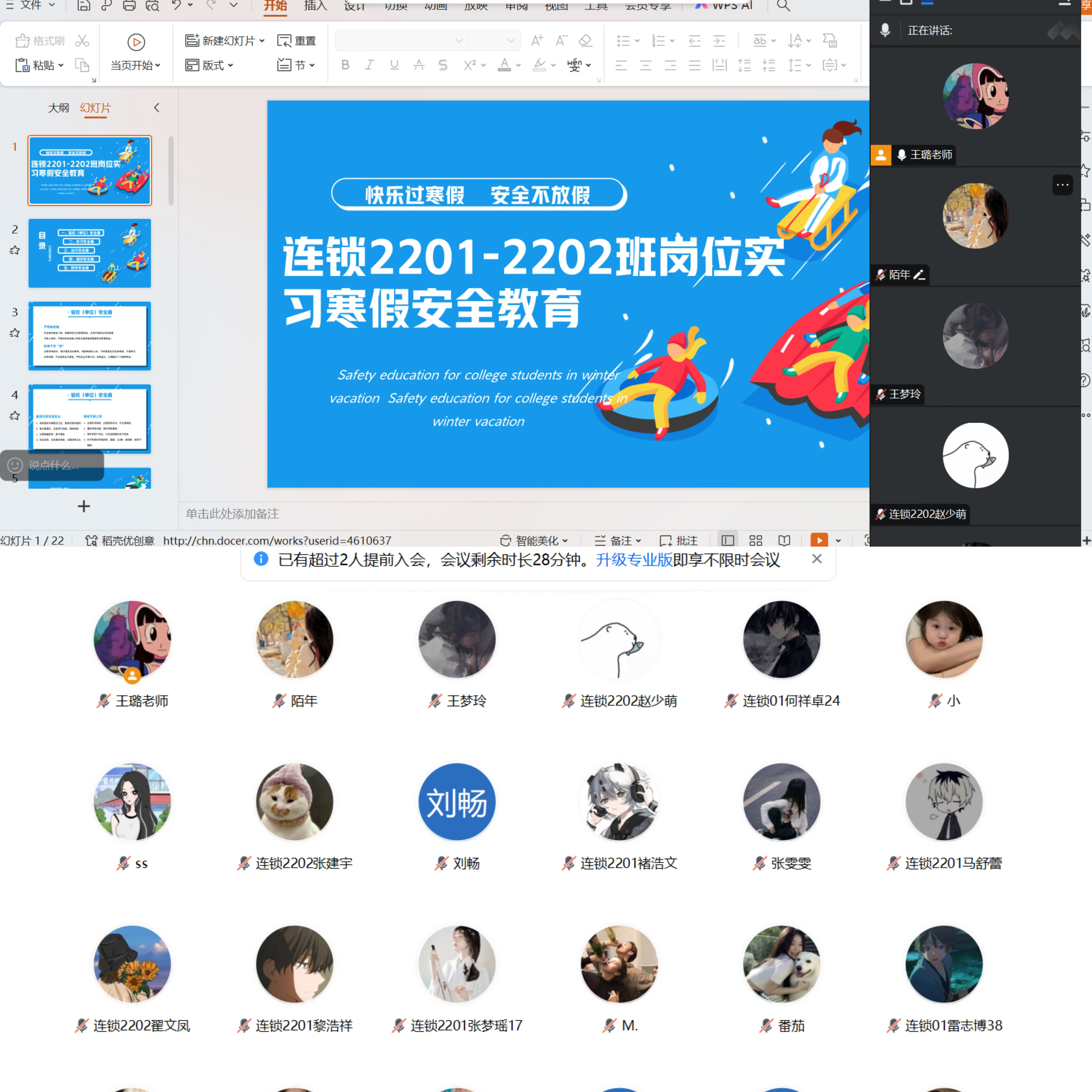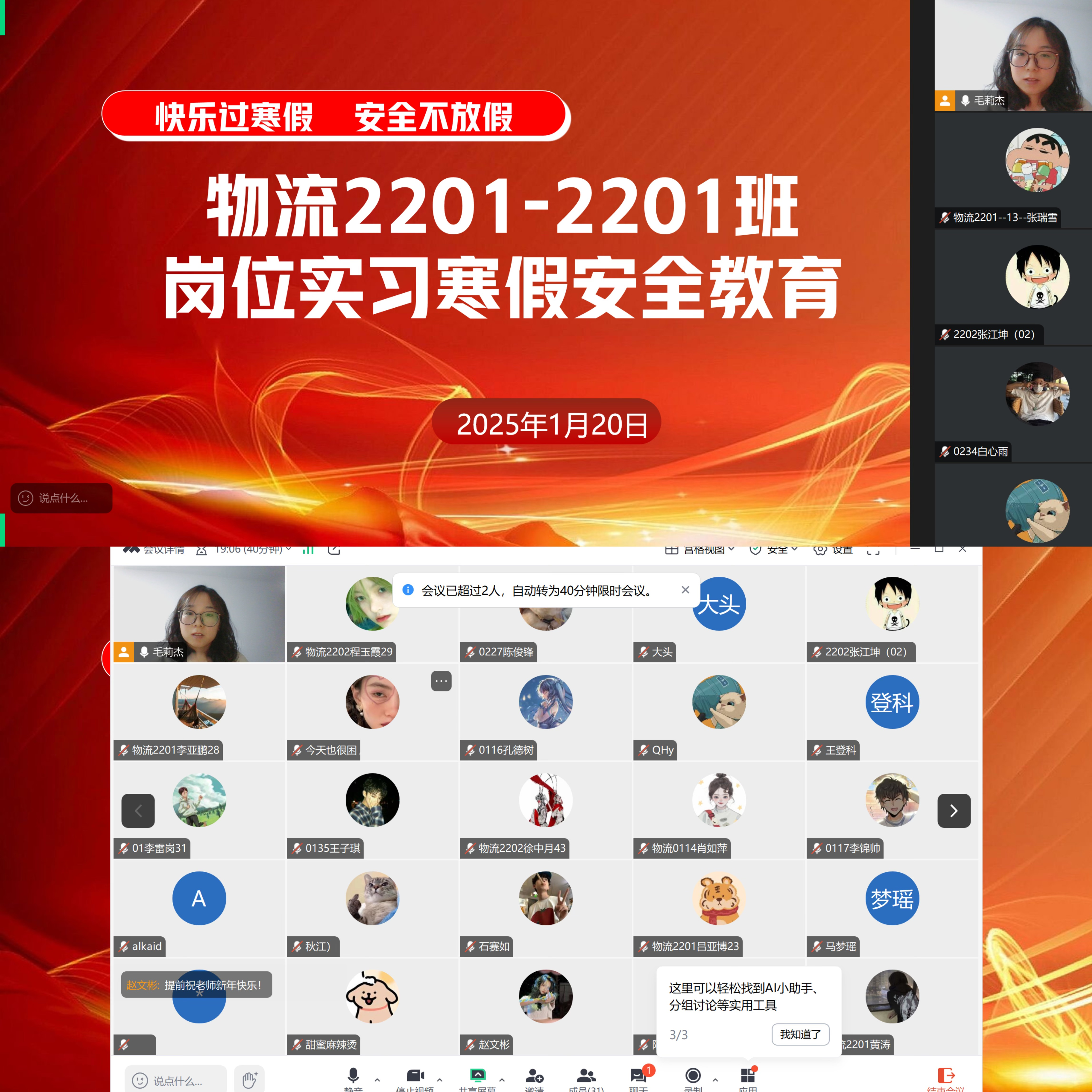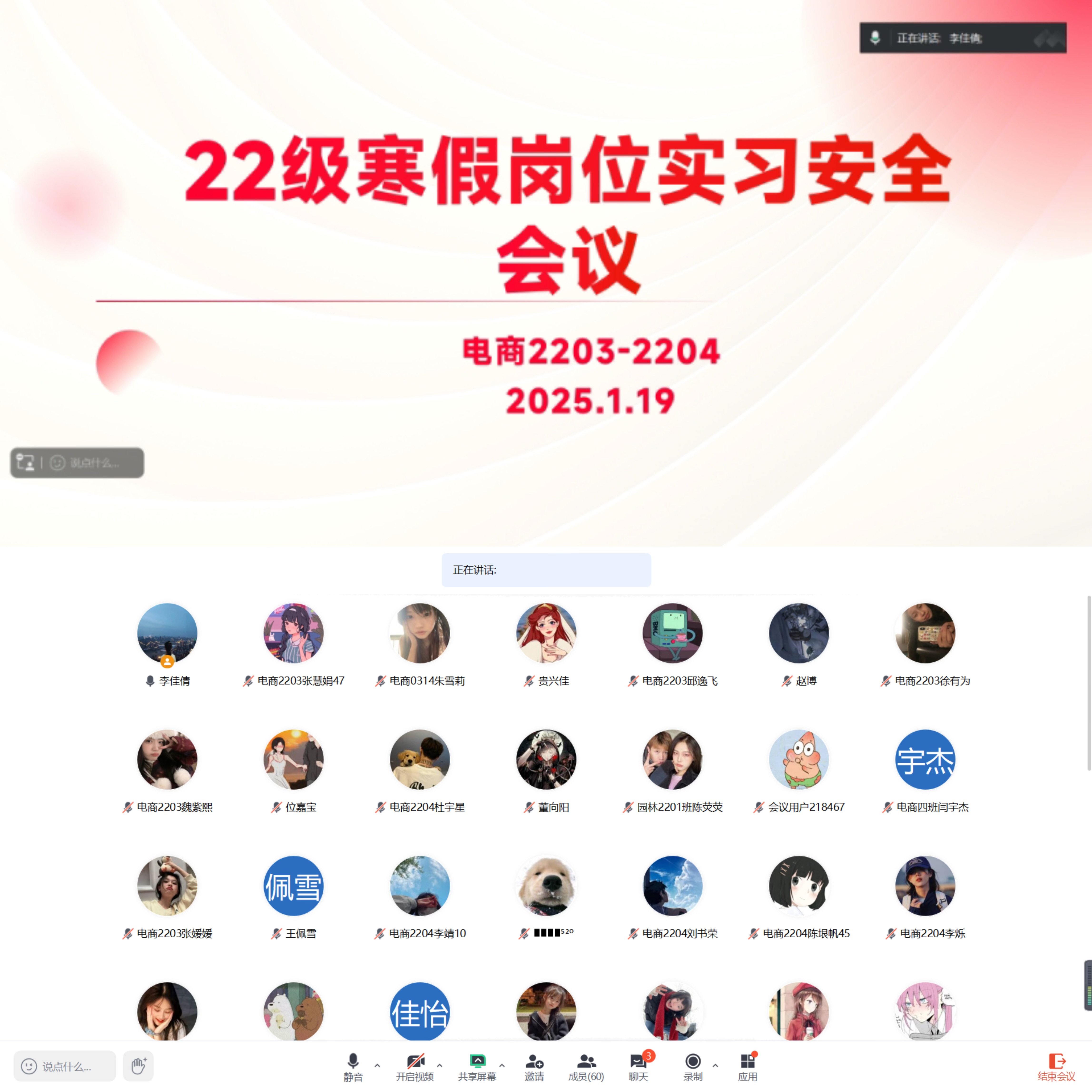 为进一步强化2022 级岗位实习学生的安全意识,保障学生在实习期间的人身和财产安全,近日,beat365英国官方网站组织开展了2022 级岗位实习学生安全教育会议。本次会议由各班级实习指导教师以线上会议形式分别给负责班级召开。