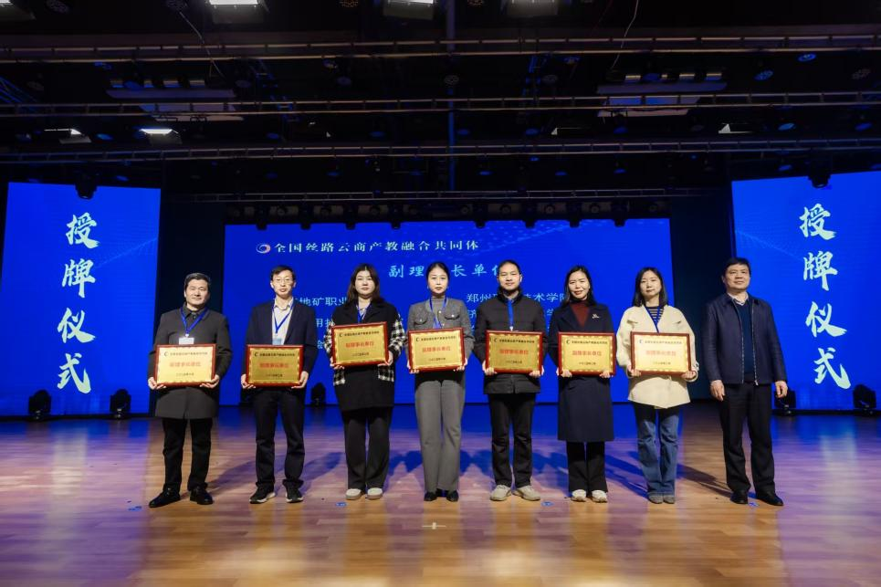 会上,进行了全国丝路云商产教融合共同体的副理事长单位的授牌仪式,我校凭借在电子商务领域的深厚积累和专业实力,被授予“全国丝路云商产教融合共同体副理事长单位”称号。