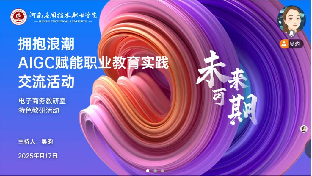 为深入贯彻落实国家教育数字化战略行动,全面提升教师队伍信息化素养,推动人工智能技术在教学中的深度融合,助力职业教育高质量发展。4月17日,beat365英国官方网站电子商务教研室组织开展了以“拥抱浪潮,AIGC赋能职业教育实践交流活动”为主题的教研活动。教研室全体教师积极参与,围绕AIGC在课程教学中的应用展开了热烈而深入的交流与研讨。
