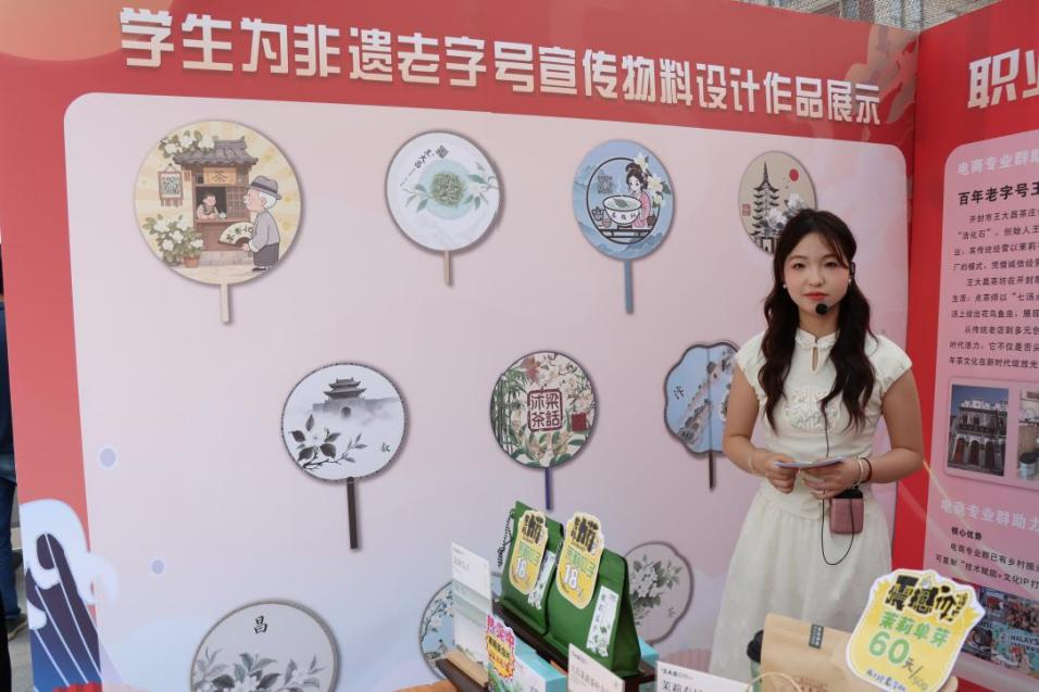 由beat365英国官方网站承办的“电商专业群助力非遗老字号焕新,续写时代新篇章”活动深度融合职业教育实践与非遗老字号创新发展,三大特色活动亮点突出。一是学生为非遗老字号宣传物料设计作品展示环节,同学们将电商视觉设计、品牌营销等专业知识融入创作,从非物质文化遗产元素提取到老字号品牌调性塑造,完成了团扇设计;二是电商专业群师生依托校企合作资源,以真实项目为载体,从市场调研、职位契合度切入,深度探讨电商赋能老字号焕新的运营策略,明确岗位技能需求与专业学习的衔接点;三是直播背景作品展示,是模拟真实电商场景,学生围绕非遗老字号王大昌的特色,设计了沉浸式直播空间场景,在实践中强化对直播营销全链条的理解,切实将课堂知识转化为服务区域经济的实战能力。