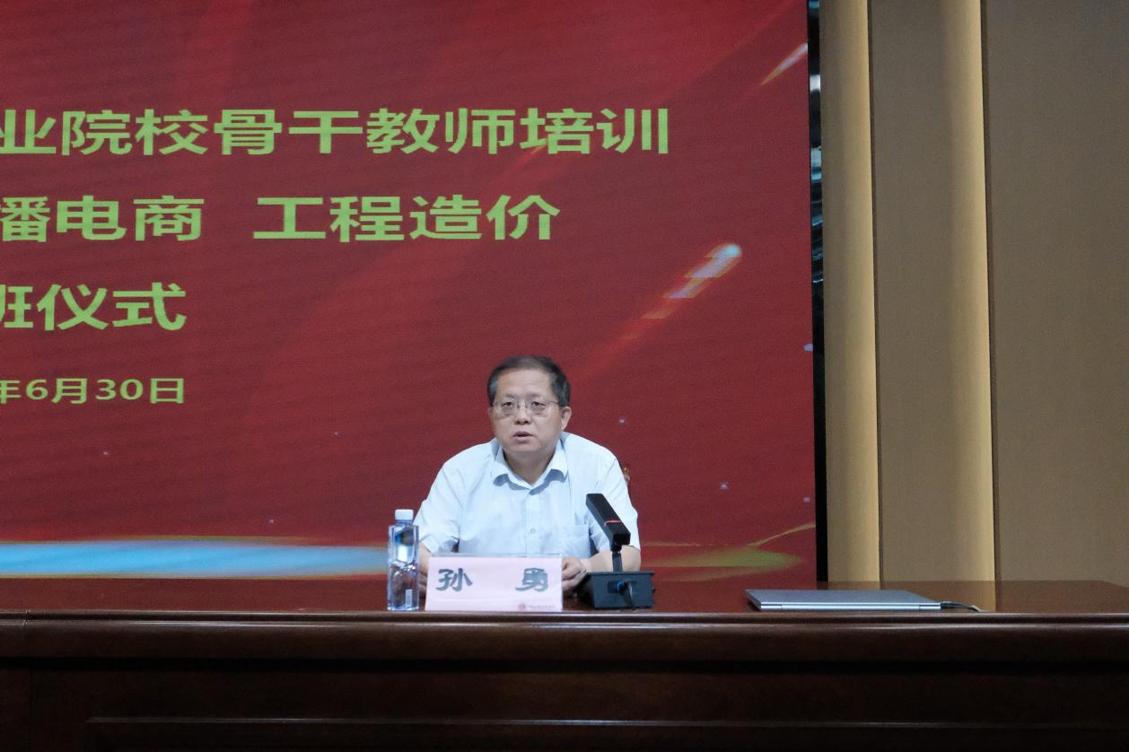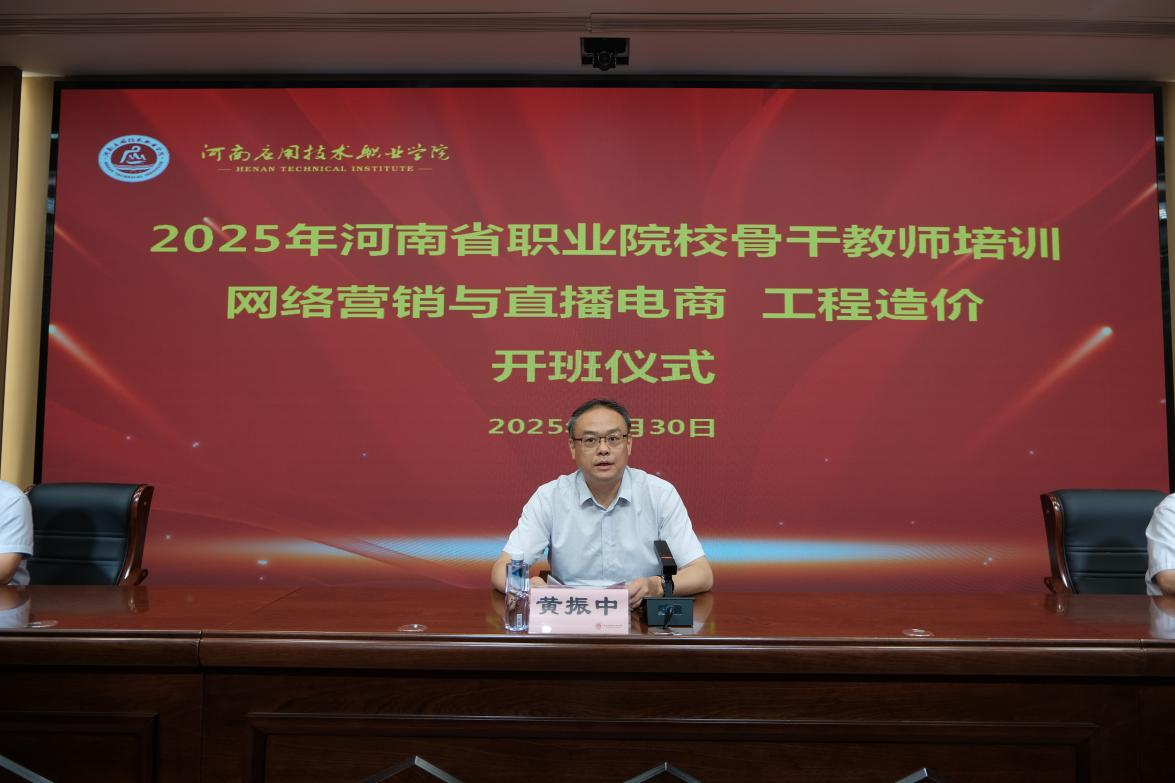 6月30日上午,我校承办的2025年河南省职业院校骨干教师(网络营销与直播电商、工程造价)培训开班仪式在郑州校区隆重举行。副校长黄振中、教务处处长孙勇、建筑工程学院院长李勇出席仪式,仪式由李勇主持。