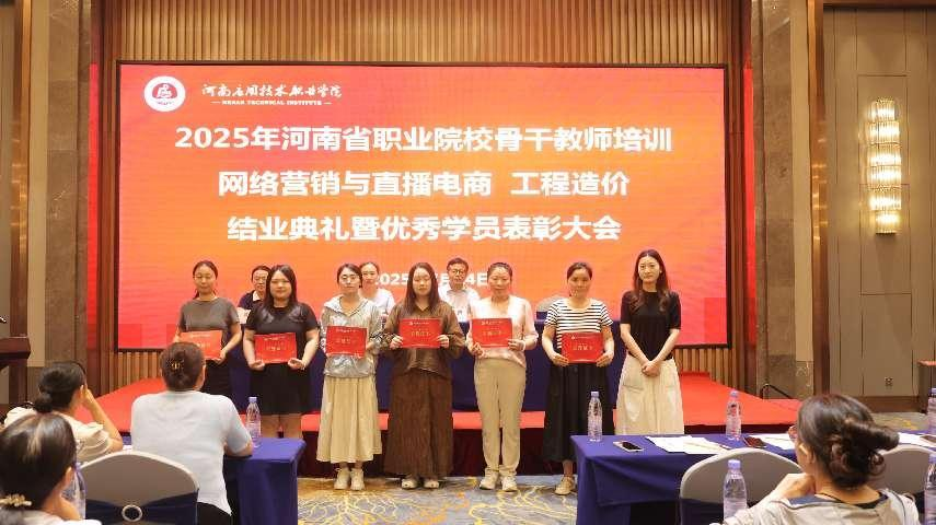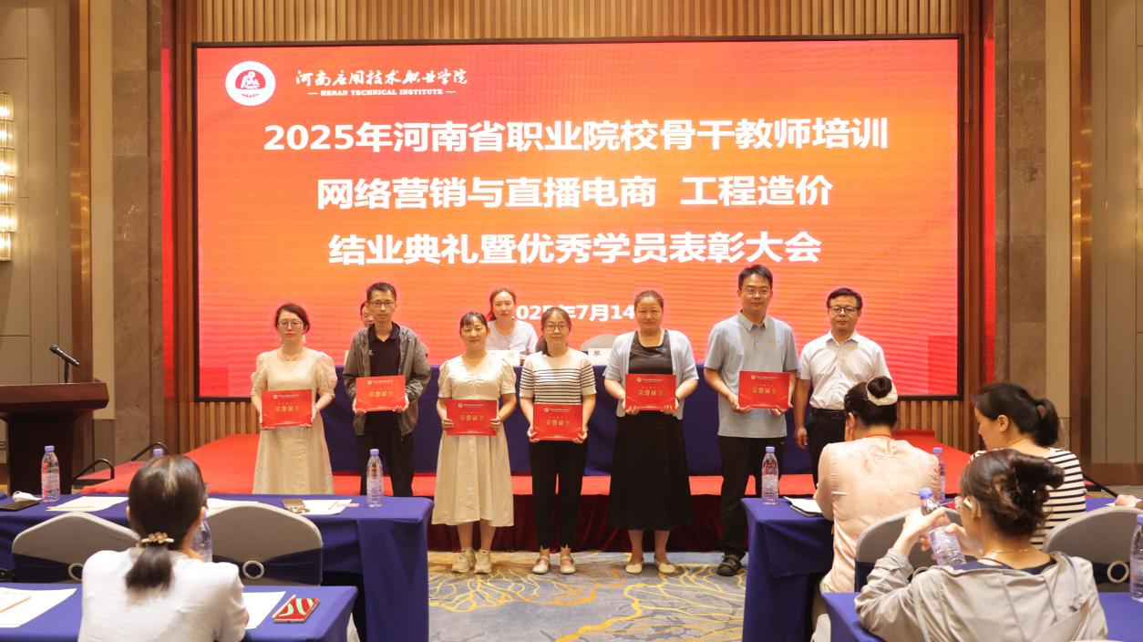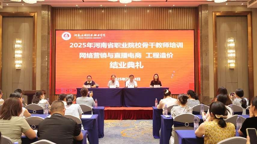 2025 年 7 月 14 日下午,2025 年河南省职业院校骨干教师(网络营销与直播电商、工程造价)省级培训结业典礼在郑州隆重举行。建筑工程学院院长李勇、beat365英国官方网站副院长王珂出席仪式,仪式由王珂主持。