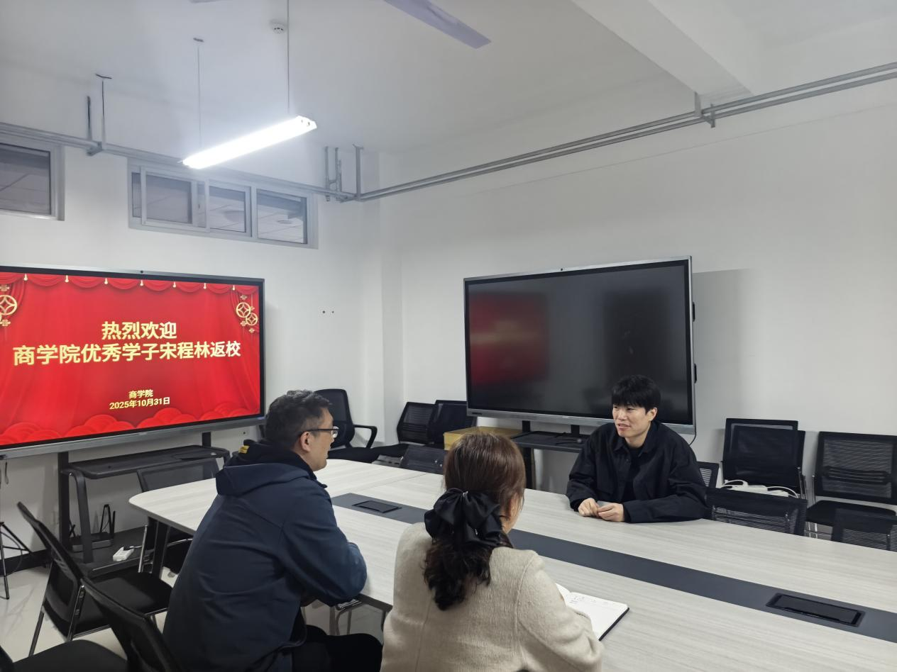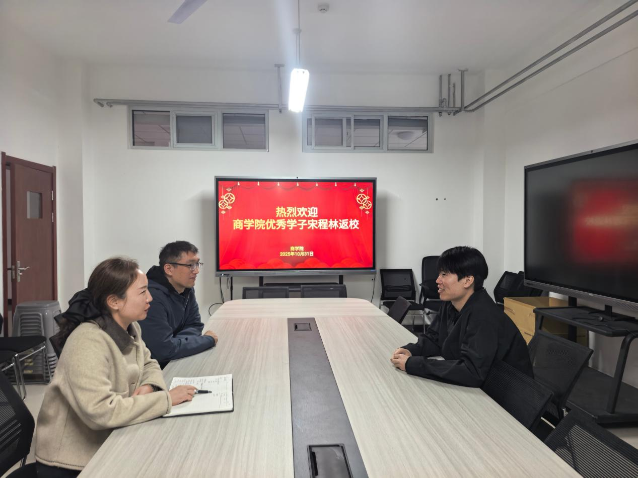 2025年10月31日,beat365英国官方网站迎来2017级物流管理专业优秀学子宋程林返校交流。beat365英国官方网站党总支书记荆伟科、院长王珂在E211会议室与宋程林深入座谈,围绕其在校学习、专升本深造、职场实践及考研上岸的成长历程展开交流,旨在通过优秀学子榜样力量,深化育人成效,为在校学生树立成长标杆。