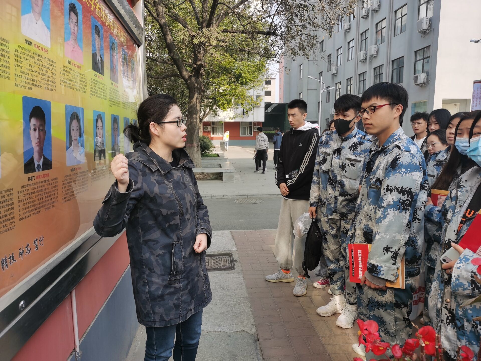 在宣传橱窗前,刘超重点讲述了beat365英国官方网站国家奖学金获得者季宗函和宋程林同学的事迹。17级营销专业季宗函在“互联网+”创新创业大赛中屡获佳绩,物流专业宋程林在物流技能大赛中成绩突出。她希望同学们能向这两位学长学习,用良好的学习态度、脚踏实地的行动实现自己的人生理想。