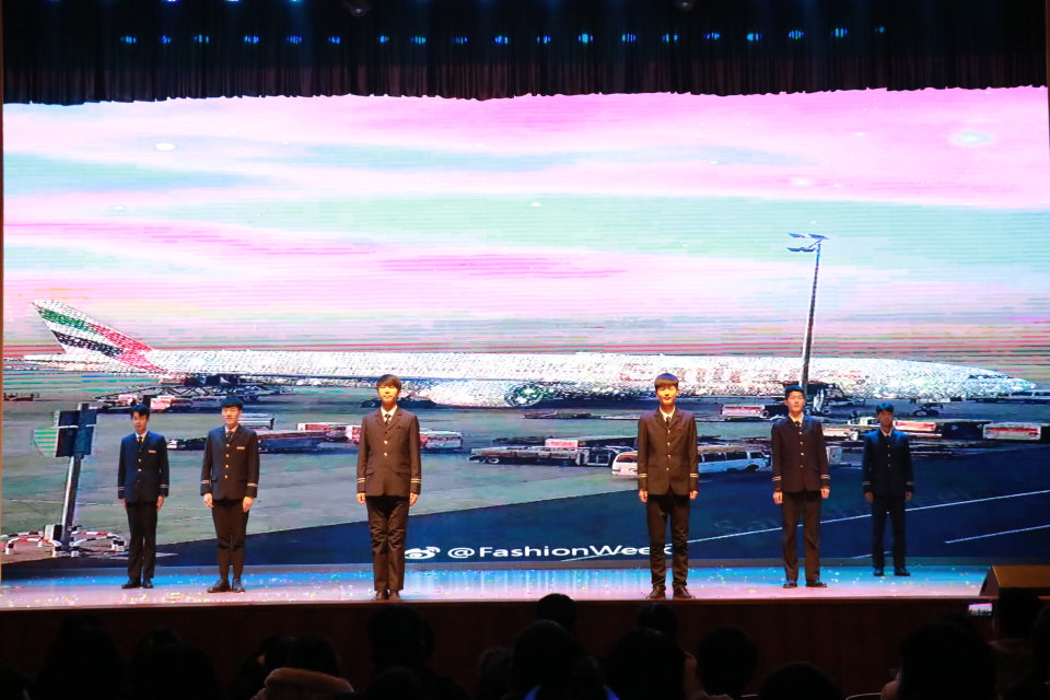 空乘专业的帅哥美女向在场的观众展示了他们的专业技能与素养。