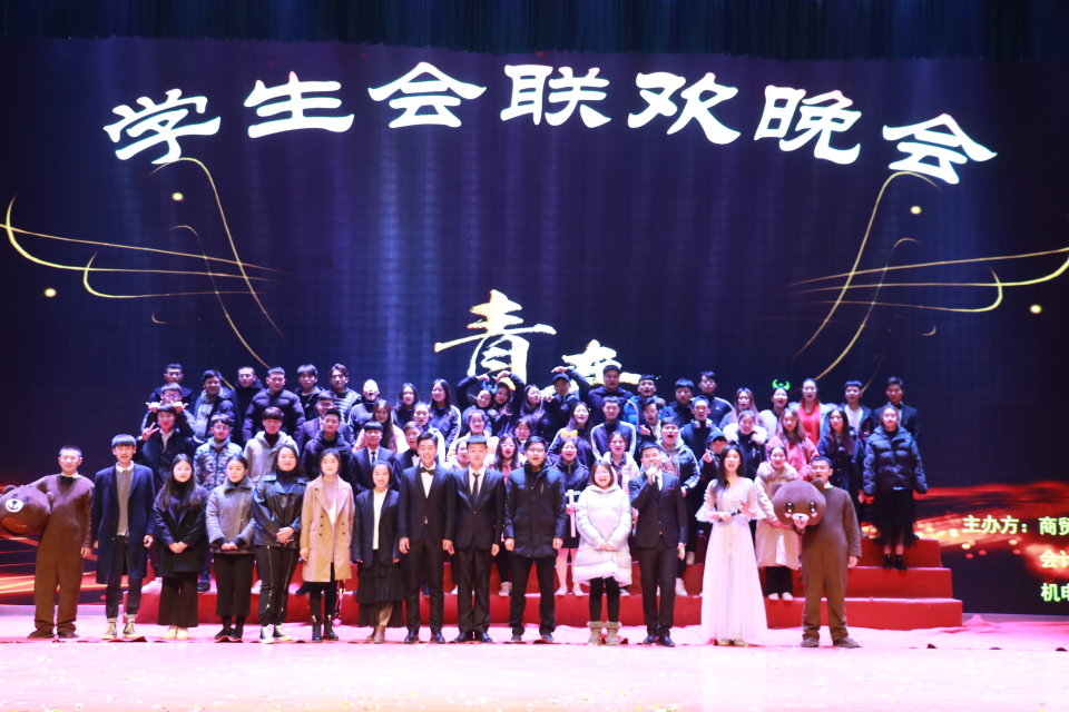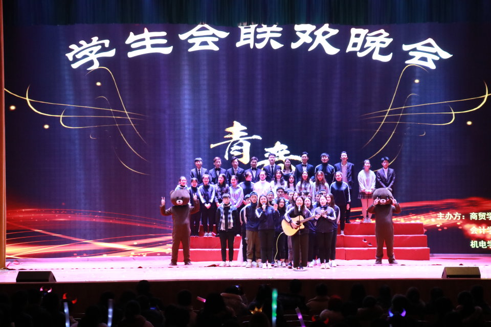 2019年1月1日晚,商贸院学生会联合会计学院和机电学院学生会一起举办2019年“青春”联谊晚会,在我校礼堂隆重举行。商贸学院书记周燕书记、团总支书记李力老师、以及商贸学院各班级辅导员亲临现场观看了此次晚会。
