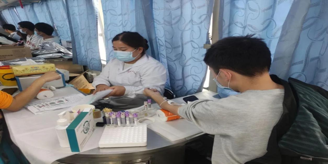 他们依次进行了填表报名,测血压,血液采样检测,最后车内献血。整个献血现场气氛温馨而融洽,通过此次献血活动,充分体现了学子们互助友爱,关心社会,乐于奉献的精神风貌,同时也表现了大学生浓厚的社会责任意识和无私奉献的良好精神。