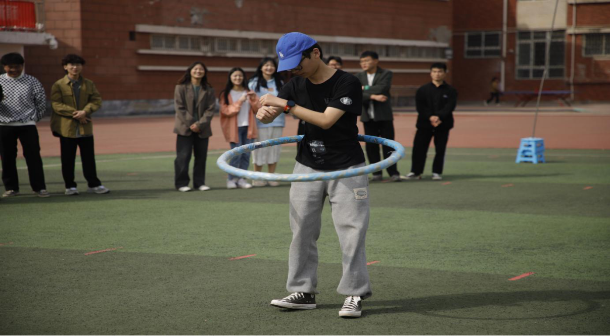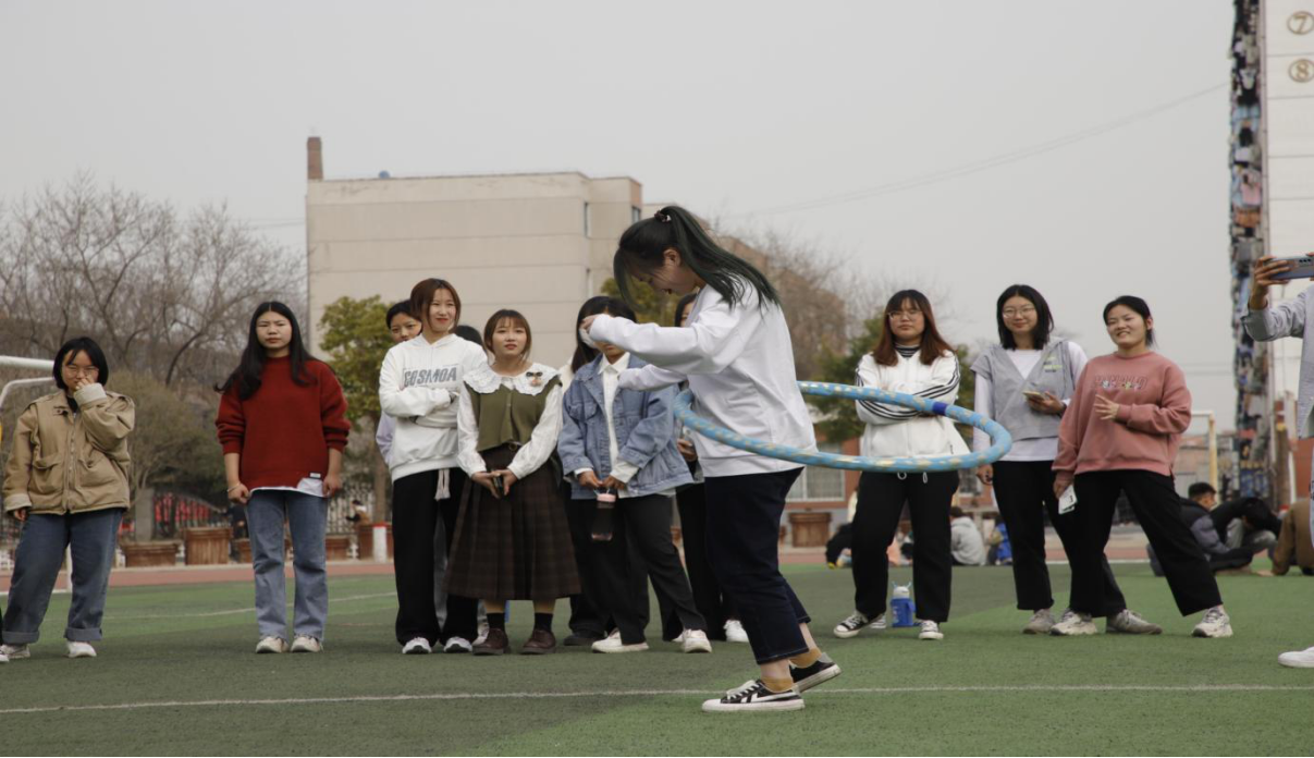 个人才艺展示时间,许多学生会干事开始上场比拼呼啦圈,看谁呼啦圈转的圈数最多、谁的技巧最花哨。