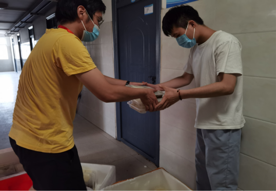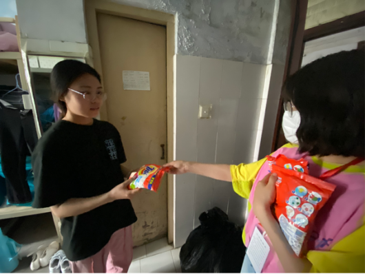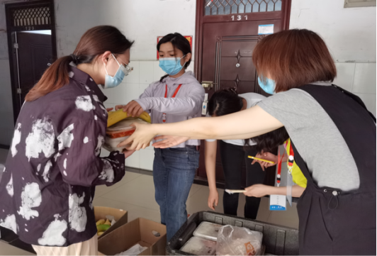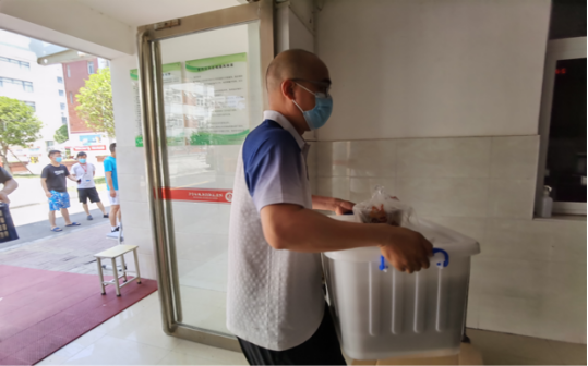 为保障专升本学生有序供餐,每天,负责老师都会及时地根据学生宿舍号有序发放早中晚三餐,细心周到的服务得到考生的一致称赞,同学们有的会笑着说:“咱学院老师真的挺辛苦的,每天上楼下楼抬饭、食堂和宿舍往返运饭、寝室敲门送饭,学院的‘家庭’式服务太赞了,很幸福、很暖心!”