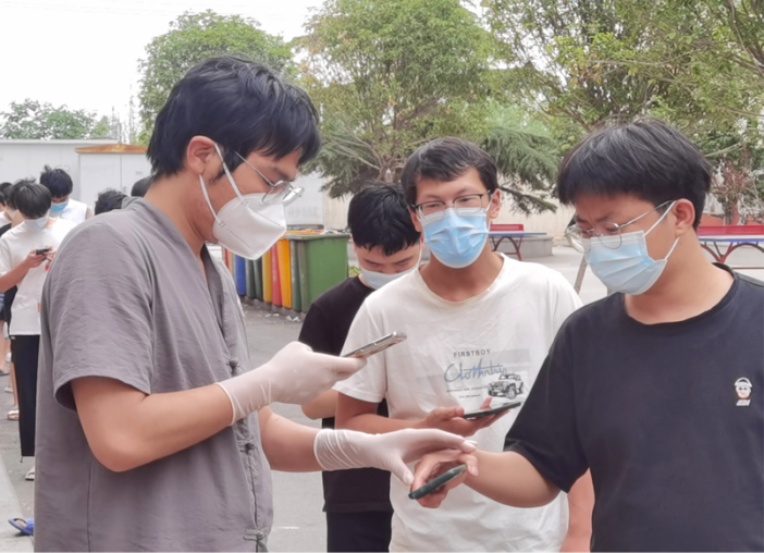 在疫情防控的关键阶段,校园疫情防控工作十分重要,为严格落实学生返校期间疫情防控管理要求,beat365英国官方网站坚决落实学生体温“日报告、零报告”、每天检查“两码”情况、提醒并组织学生按时参加学校核酸检测等。比如,党员教师朱海成为爱心志愿者,勤恳尽责、温暖奉献,为学院专升本学生服务工作贡献自己的力量;辅导员教师乔光辉化身为“组织员”,有条不紊的组织学生核酸检测工作;辅导员教师张天娇化身为“快递员”,迅速及时为学生领取快递,并不断叮嘱返校考生在隔离期间要保证宿舍卫生,做好个人防护、戴好口罩、勤洗手、勤消毒。