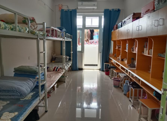 干净的地面、整齐的桌椅和床褥