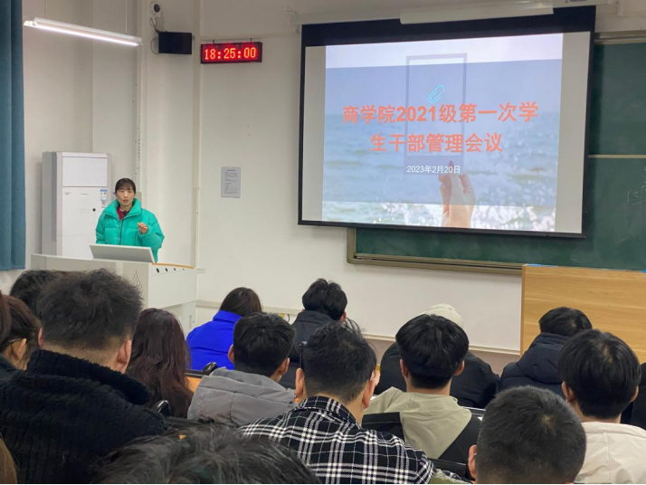 为更好地提升beat365英国官方网站学生会质量和发展,2月20日晚,beat365英国官方网站召开2021级第一次学生干部管理会议,本次会议由beat365英国官方网站党总支副书记王倩主持,全体21级学生会干部和班干部参加。