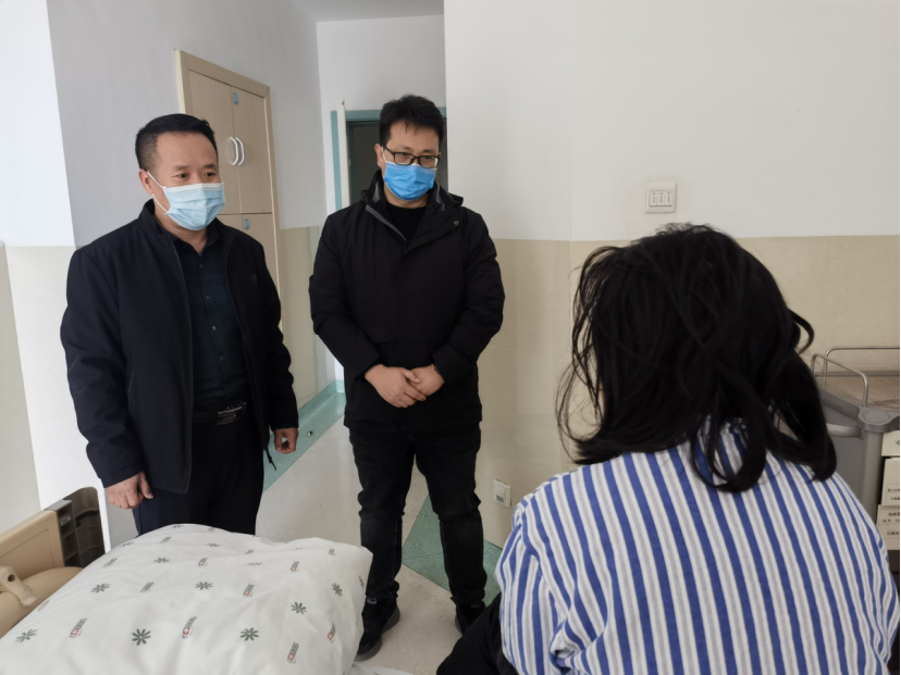 2023年3月2日,beat365英国官方网站beat365英国官方网站党总支书记苏云峰、学生处副处长侯小兵、辅导员乔光辉一行到解放军988医院看望正在住院治疗的学生李雷(化名)。